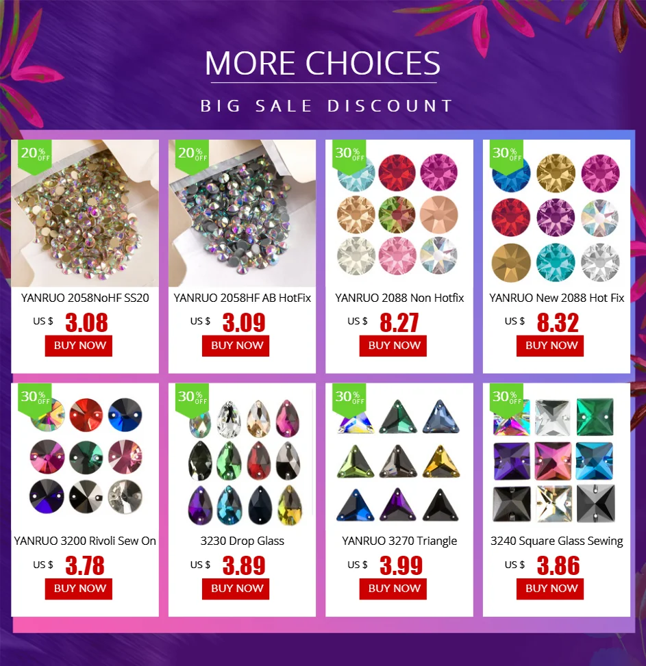 Стежка на блеск с потрясающим стразами пришить кристаллов! Не заслуживаете ли ваши сумки, одежда, шарфы и личные аксессуары немного пошива? Используйте свое воображение, чтобы создать замысловатые узоры из потрясающего множества сочных кристальных цветов, многомерных эффектов и сказочных форм, включая rivoli, round, rose montees и многое другое!