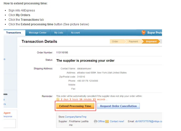 Только покупатели могут продлить время обработки. Поставщики могут попросить покупателей продлить время обработки заказа, если им нужно больше времени, чтобы отправить заказ.