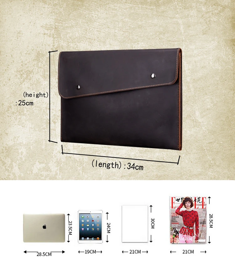 Материал: коровья кожа Размер: 32*4*24 см (Д * Ш * В) Цвет: темно-коричневый Вес: около 0,6 кг Дизайн: кожаная сумка для мужчин и женщин Емкость: может держать А4 книги, iPad, карманные книги, мобильный телефон, кошелек, очки, бумажные салфетки и т. Д. Аксессуары: съемный плечевой ремень и ремешок на руку