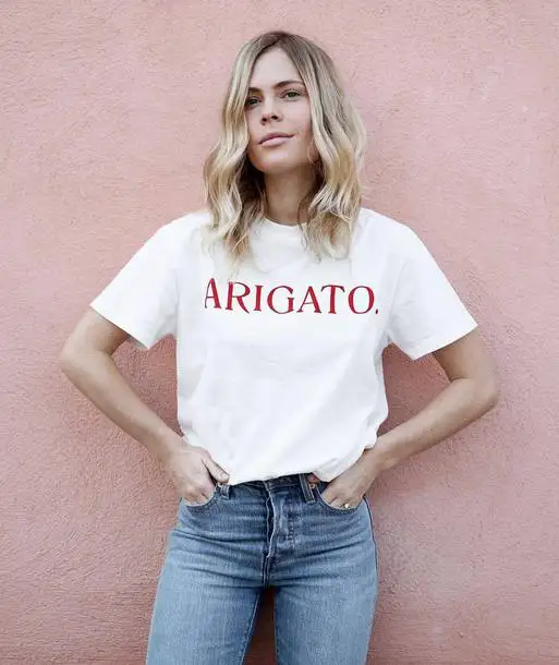 2017 новая летняя футболка «ARIGATO», женская модная футболка, tumblr, топы для девочек, летняя одежда, повседневная футболка для девочек, бесплатная доставкаUSD 8,29/Шт.