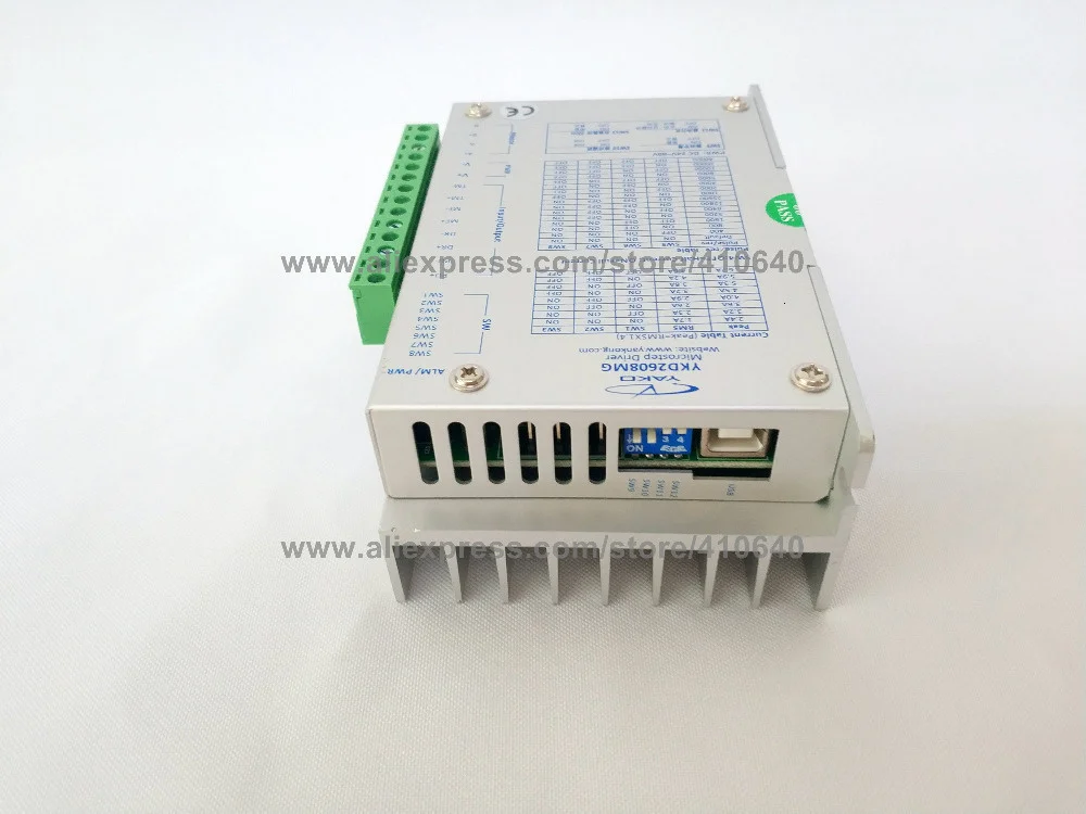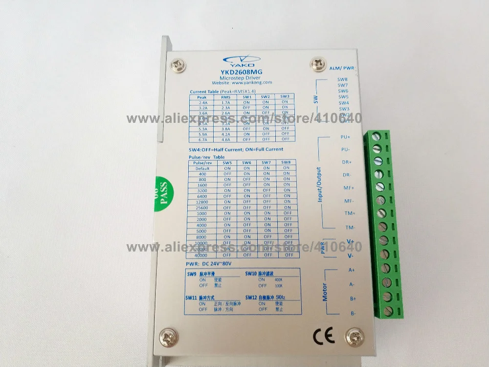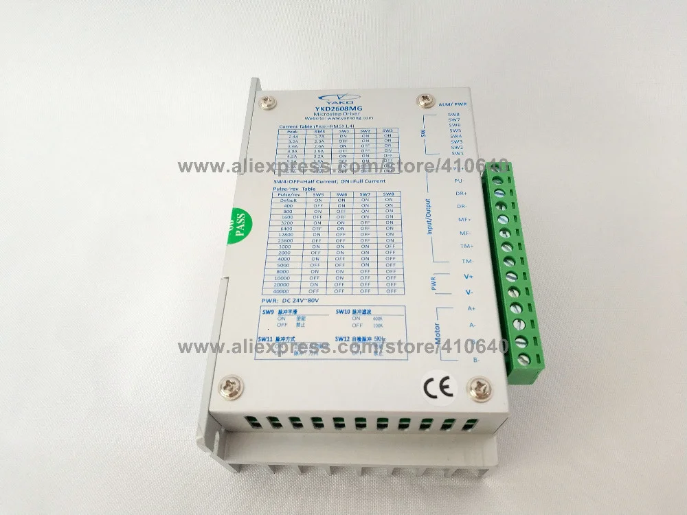 YKD2608MG идентичный-угол постоянного крутящего момента микрошаговый привод с Рабочее напряжение DC24 ~ 80 в. Он предназначен для различных моделей двухфазных 57 ~ 86 мм (NEMA 23 ~ 34) гибридных шаговых двигателей, ток которых ниже 6а.