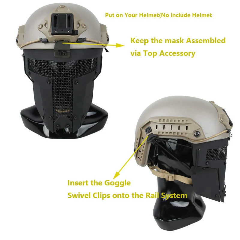 Подходит для различных быстрых стильные шлемы; Спарта стильная маска для защиты от страйкбола BB's Установка и удаление без инструментов: очень удобно и легко установить и удалить его со шлема, так как это установка без инструментов для вашего тактического шлема Покрытие более чем посылка включает только одну маску (шлем не входит в комплект) Для обеспечения безопасности, пожалуйста, носите очки при использовании этой маски для игры в чехол риск поломки для стальной проволоки Параметры: Материал: нейлоновый пластик + стальная сетка Вес: 0,44 фунта (200 г) Размеры: 7 "x 10"(18x25,4 см)