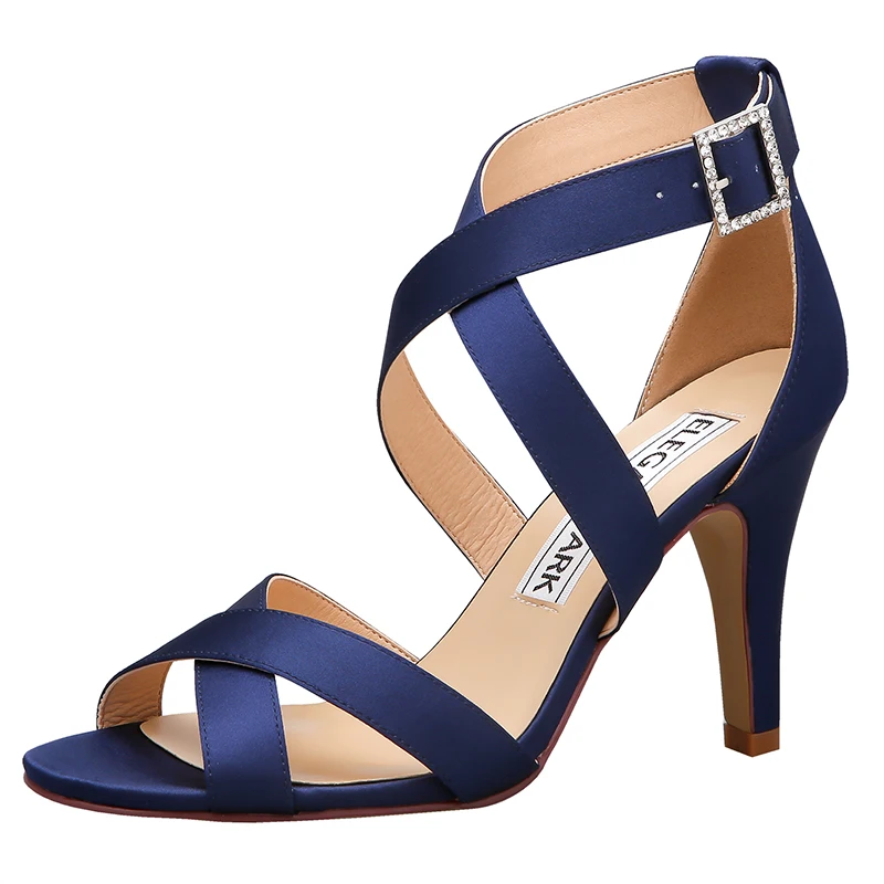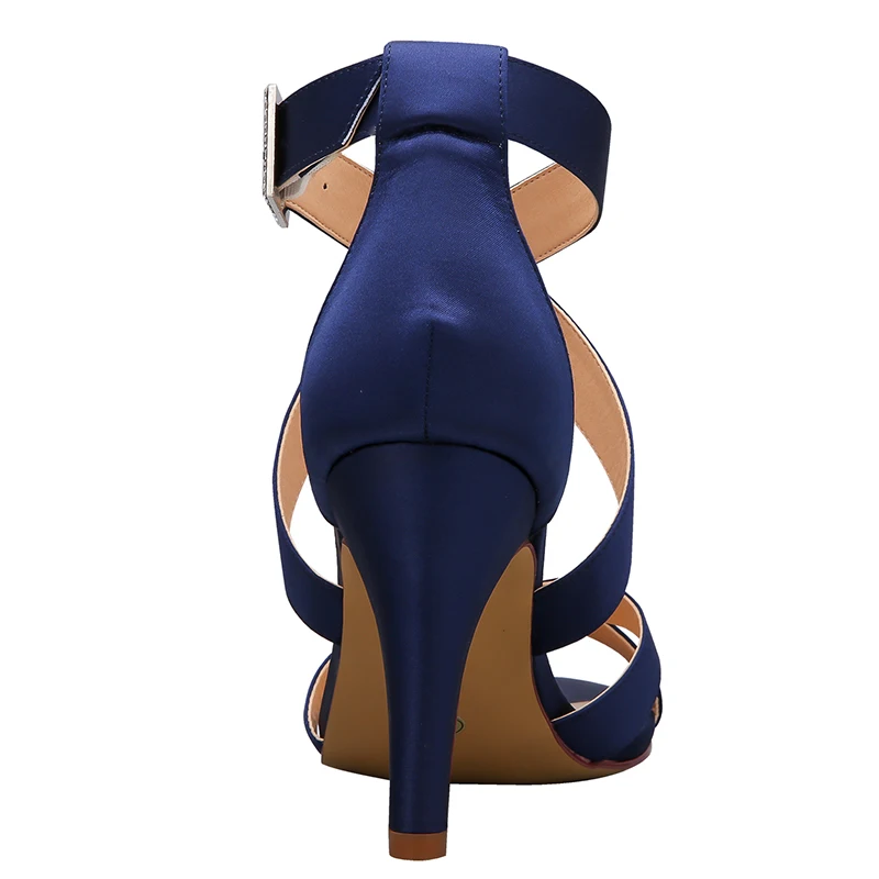 100% Новые Брендовые женские свадебные сандалии темно-синего цвета с открытым носком и перекрестными ремешками