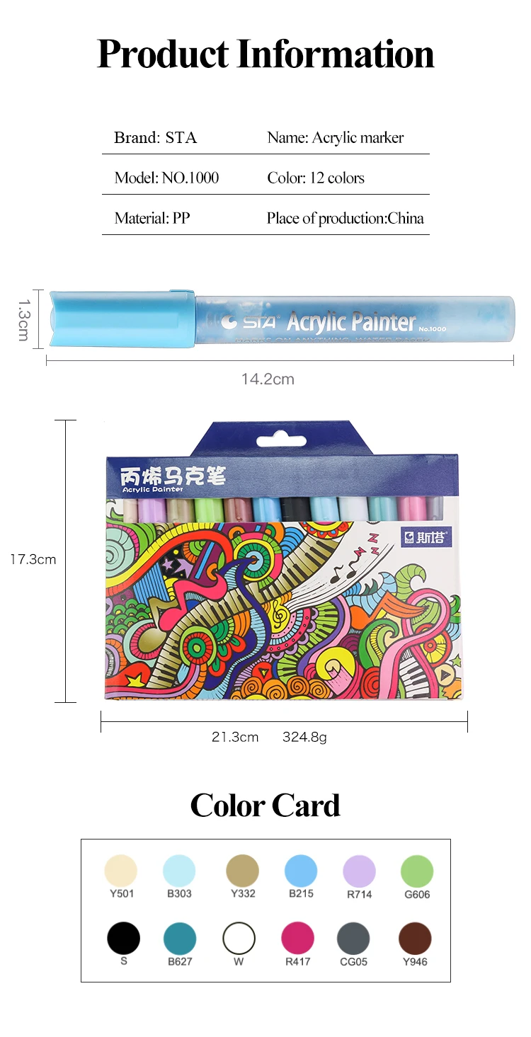 STA 1000 12/24/28 цветов акриловые краски для рисования на водной основе художественные маркеры для школы принадлежности для рисования акварелью Новинка