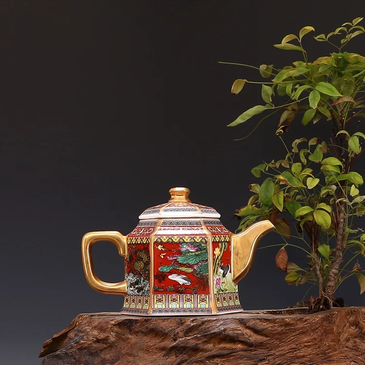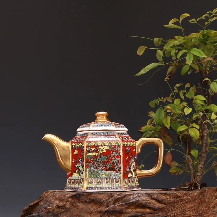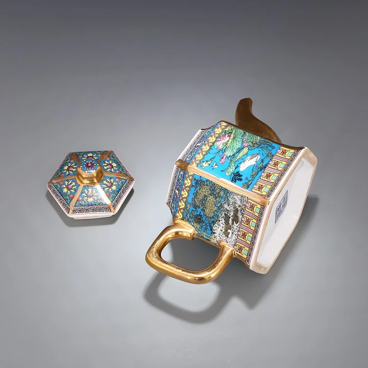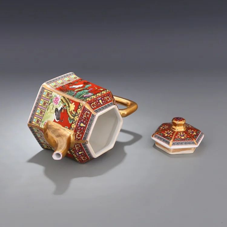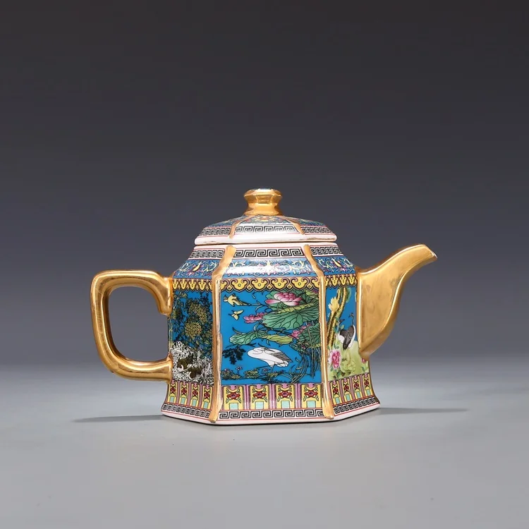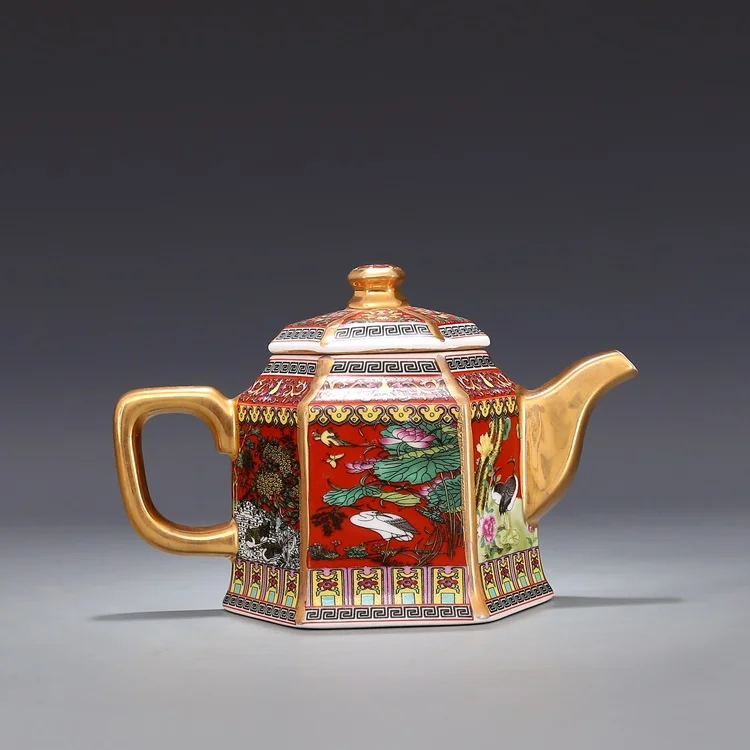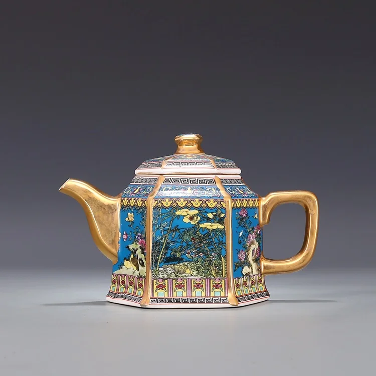 Описание продукта:Название:Цзиндэчжэнь Античная Qianlong Эмаль Золотой чайник с ручкой шестигранные чайники с цветами и птицами узор древний фарфорСтиль: Винтажный стильСделано в ЦзиндэчжэньРазмер:Height10.50cm width16.50cmДиаметр рта 6,50 см Нижняя dia10.5cmЕмкость 280 млБренд: повышениеУпаковка: картонная коробка с общей пеной, очень безопаснаяКомплектация: чайник x1Деревянное основание в комплект не входит