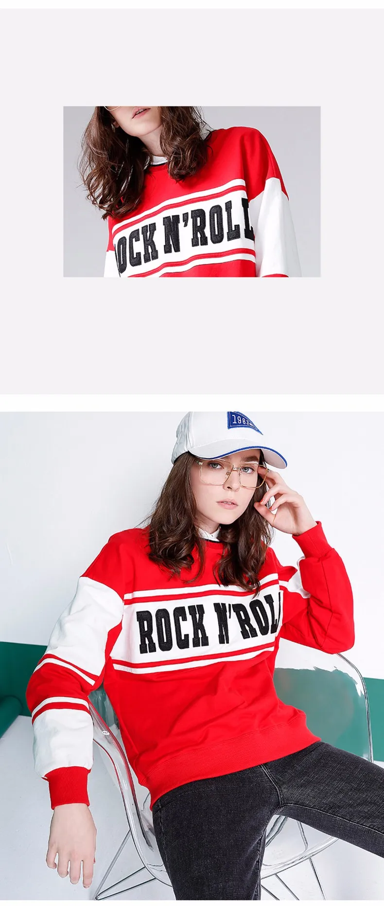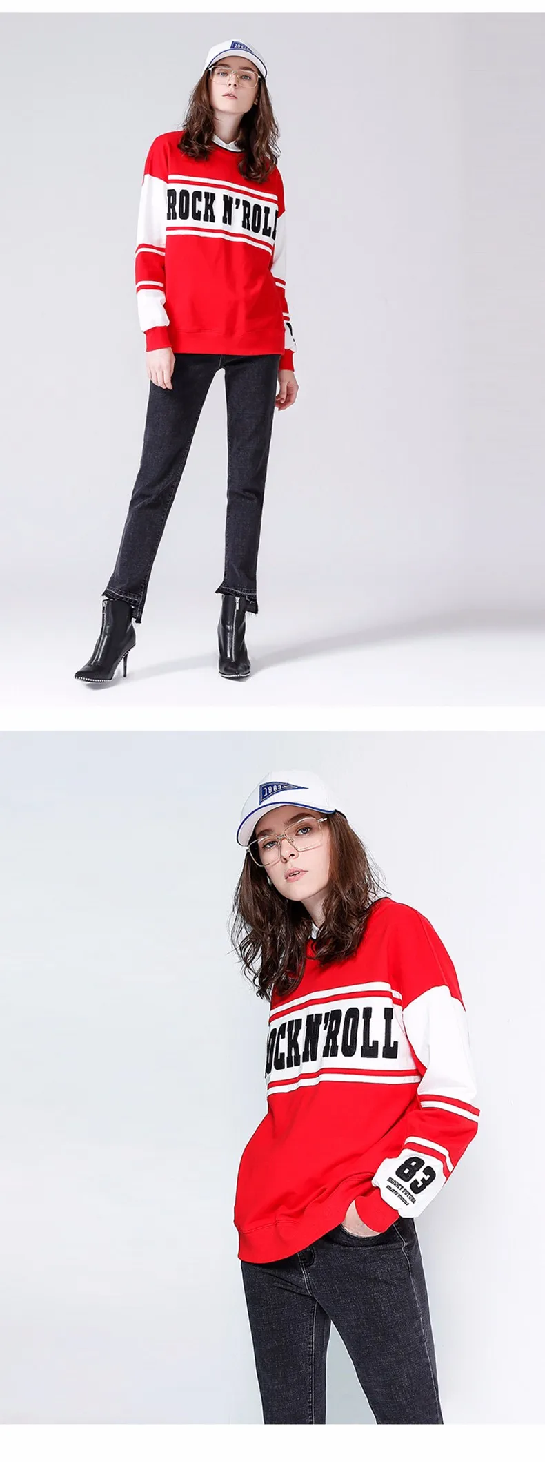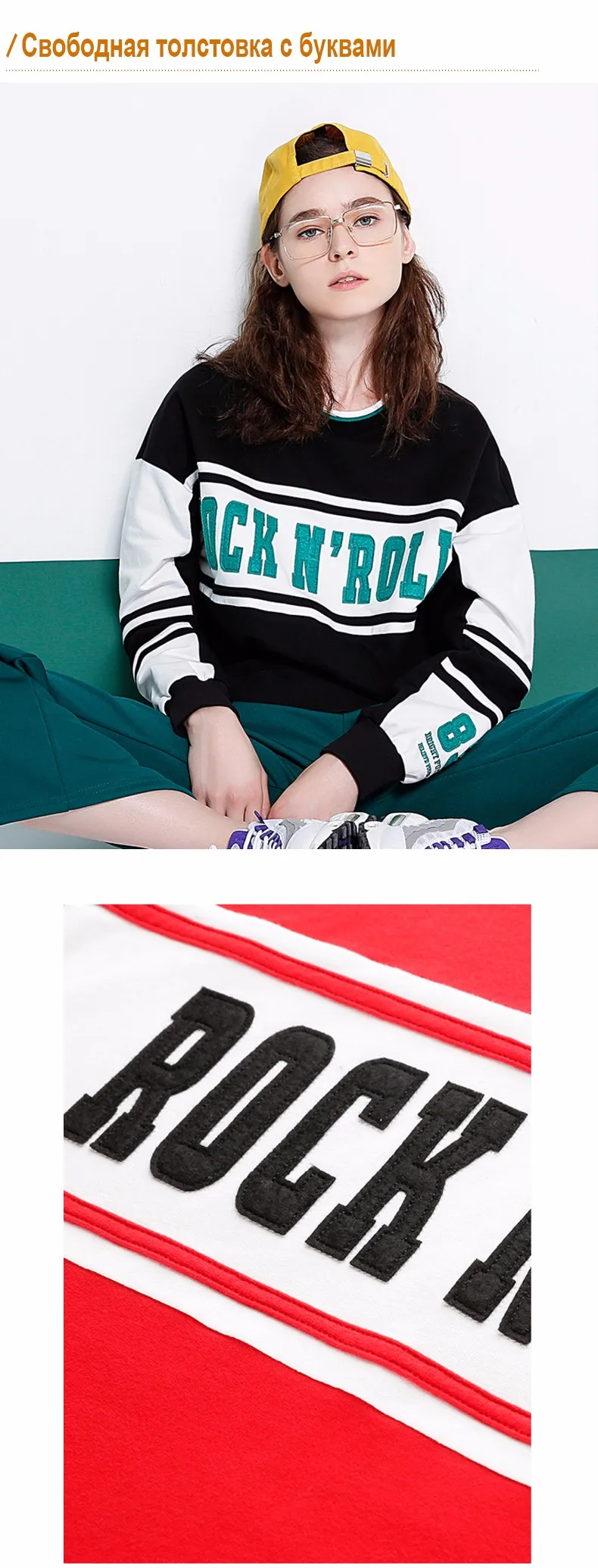 Женский осенний свитер с круглым вырезом Модный свитшот длинным рукавом и