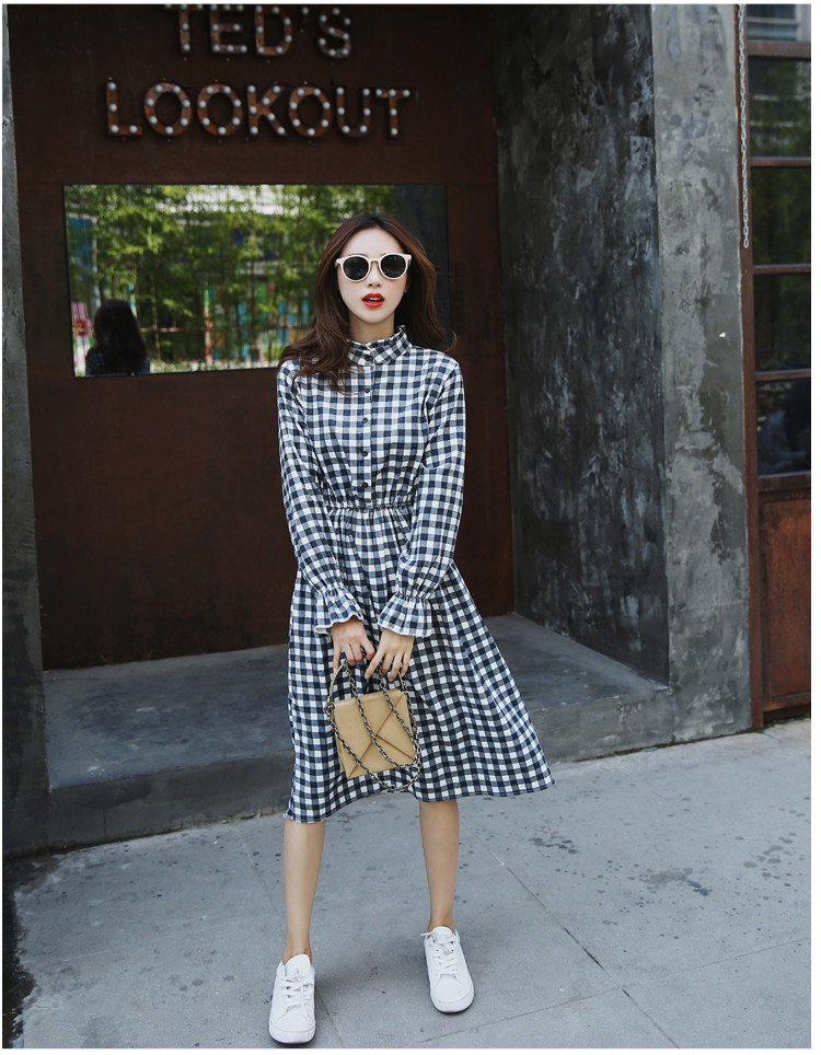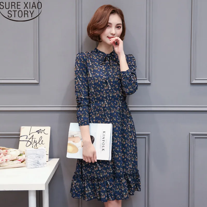 Новое поступление 2017 осеннее платье женское с длинным рукавом офисное тонкое в