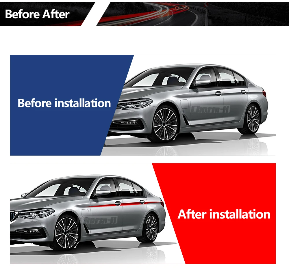 Пункт Применимость: Подходит только для BMW G30 G31 5 серии 2017-настоящее время Особенности: Изготовлено из высококачественного винилового переводного материала Цвет: матовый черный, серебристо-серый, глянцевый черный, глянцевый красный, глянцевый белый и 5D углеродное волокно на выбор Размер: Размер по умолчанию для G30 G31 Установка Обратите внимание: Дверная форма чаши должна быть обрезана самостоятельно. Пожалуйста, обратитесь к профессионалам для установки наклеек, так как неправильная установка может привести к повреждению наклеек Если вы не уверены в этом сами. Перед нанесением убедитесь, что кузов автомобиля тщательно промыт, очищен и высушен. Пакет включает в себя: 2 X шт боковые полосы наклейки для левой и правой стороны