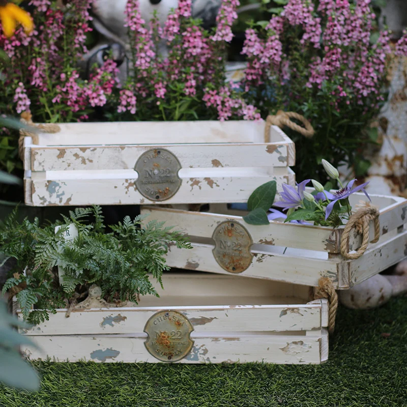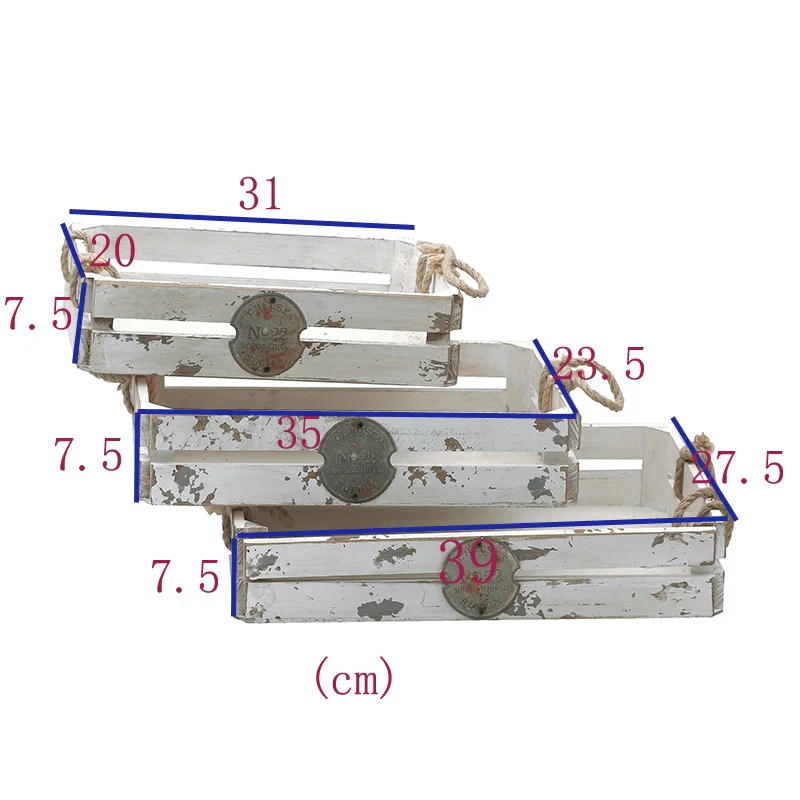 Product Name | set 3 stack shabby white shallow small wooden storage crates |