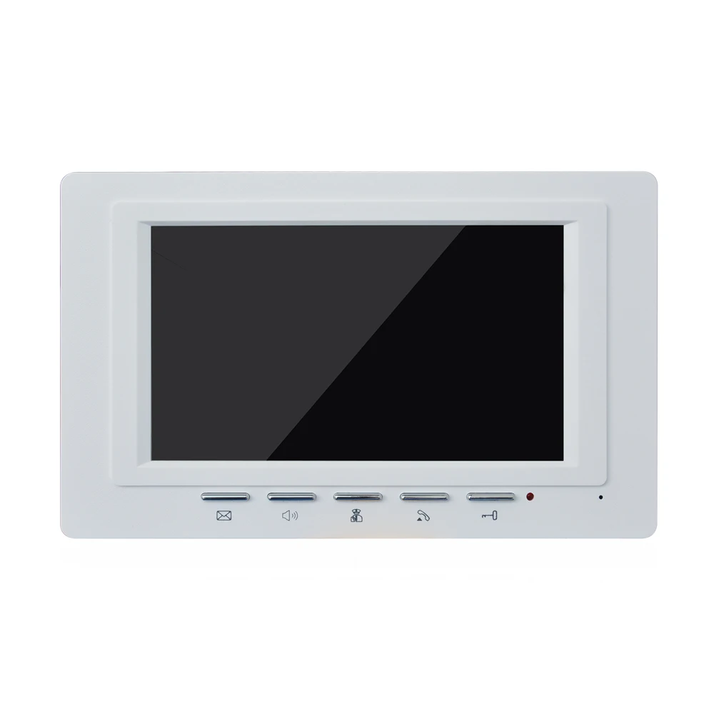 Спецификация внутреннего блока: 1. Размер экрана: 7 дюймов (дисплей 16:9) 2. Цифровой разрешение: 800*480 пикселей 3. Угол обзора: вверх 50 градусов, вниз 70 градусов, влево или вправо 70 градусов 4. Яркость: 200 кд/кв. М 5. Мелодия звонка: аккордированный полифонический рингтон 6. Чувствительность: 56 дБ 7. Сигнальная система: PAL 8. Входное напряжение: AC100-240V 9. Общее потребление поер: 6 Вт макс (400мА) 10. Стенд poer compupbation: 1,1 W max 11. Спецификация адаптера питания: 15 В постоянного тока 12. Задержка в режиме разговора: 120S 13. Задержка отслеживания времени: 40S 14. Эффективное расстояние: 200 м (4.0.75 кв. М) 15. Рабочая температура: от-20 до 60 градусов 16. Относительная влажность: от 10% до 90% 17. Метод установки внутреннего блока: настенный тип