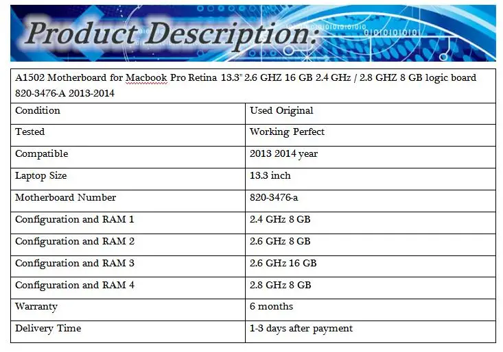 Примечание: 2,4 ghz 8gb/2,6 ghz 8gb/2,6 ghz 16 gb/2,8 ghz 8gb они используются вместе, просто конфигурация отличается