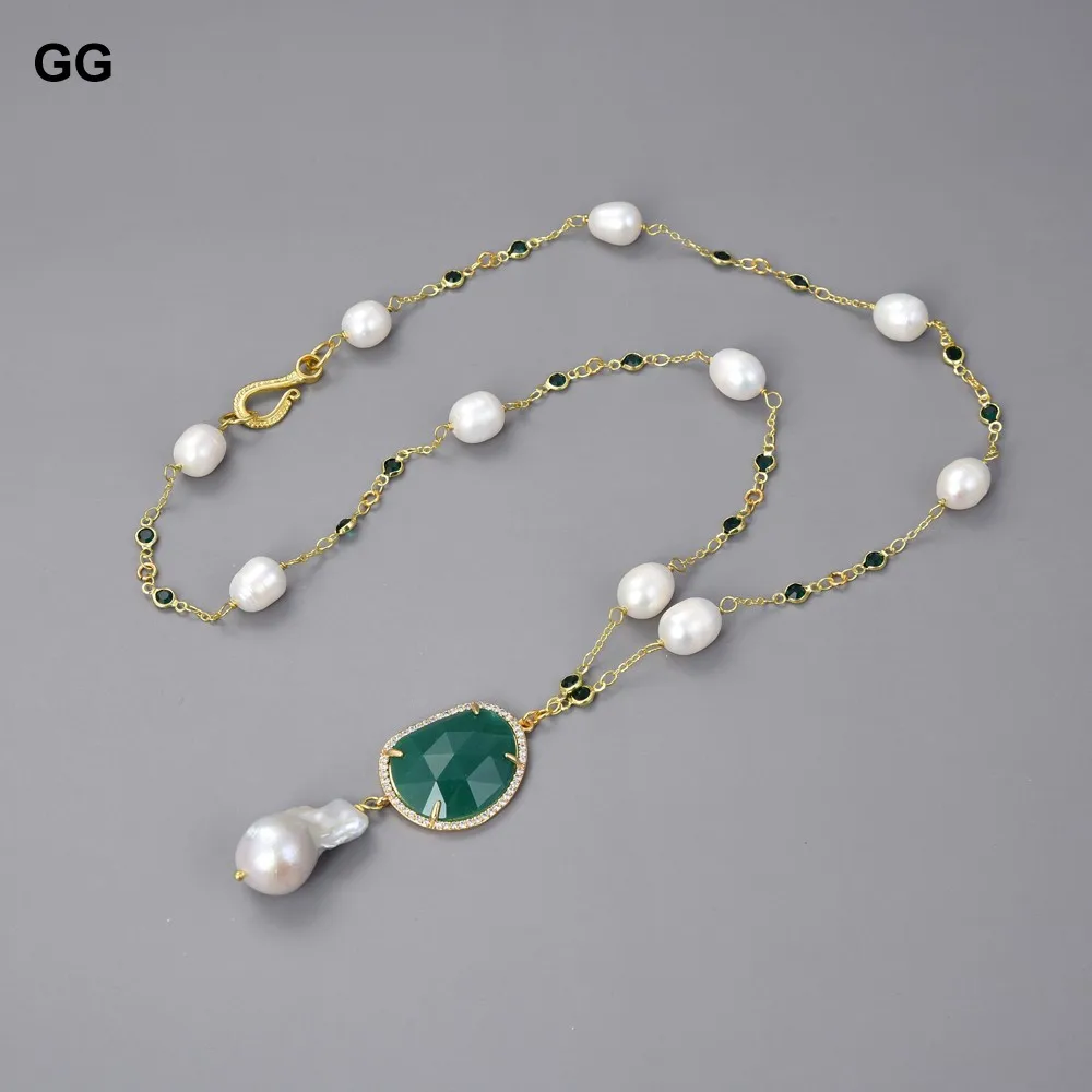 Информация о драгоценных камней: Пресноводный Культивированный жемчуг, белый жемчуг в форме риса и Кеши жемчужный кулон, Зеленый Кристалл Cz кулон, хорошее качество, высокий блеск!