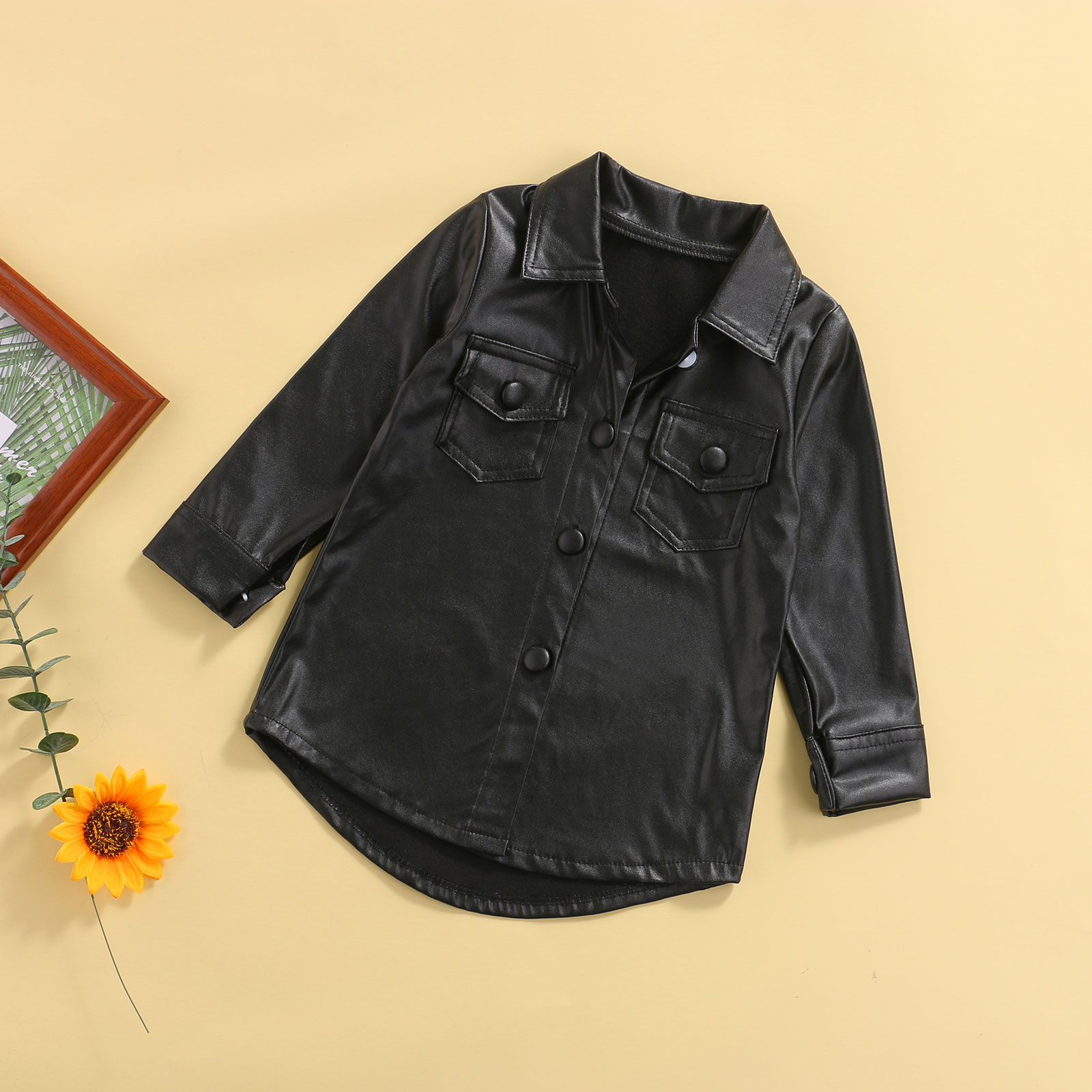 От 2 до 7 лет милое детское повседневное пальто из искусственной кожи Модное детское кожаное пальто с длинными рукавами и отворотом на пуговицах и карманами