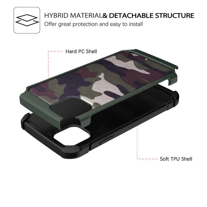 1 х Камуфляжный защитный чехол для iPhone 5 5s/6 6S/ 6P 6S plus/7 8/7P 8P/x/Xs/Xr/Xs max/11/11pro/11pro max/12mini/12/12 pro/12 pro max