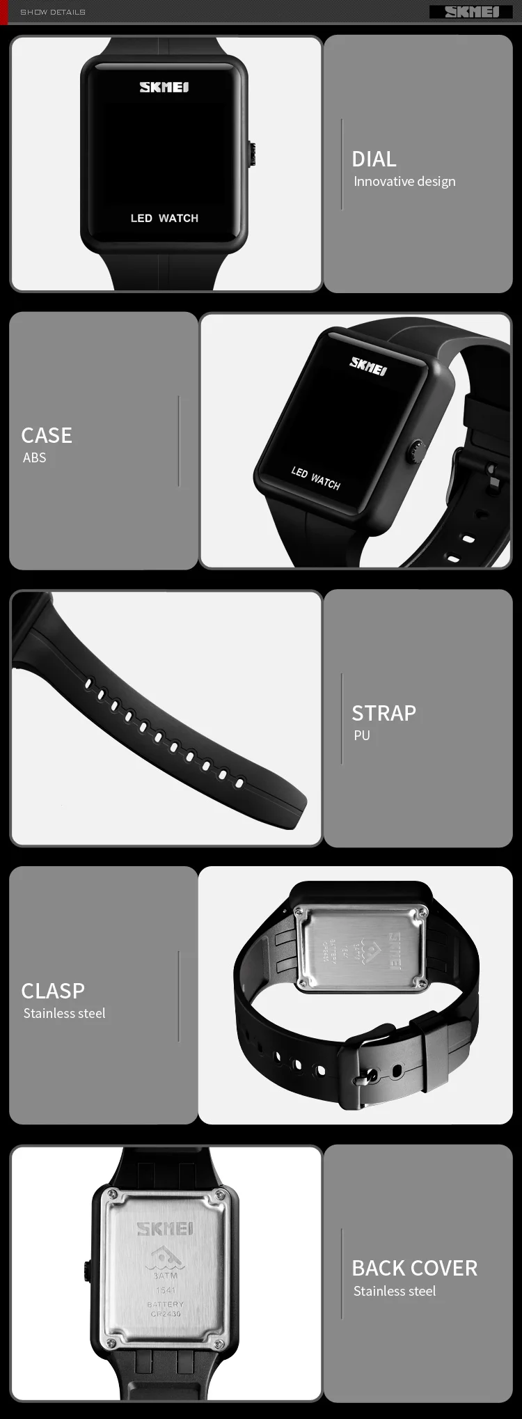 100% новое высокое качество Показывает время цифровые спортивные часы Отображение времени в числах показывает час, минуты и секунды Четыре кнопки для управления различными функциями Материал ремешка: полиуретан Диаметр циферблата: 3,7 см/1,5 дюйма Длина ремешка: 25 см/9,8 дюймов Глубина водонепроницаемости до 30 м (пожалуйста, не нажимайте кнопки под водой и не помещайте в горячую воду)