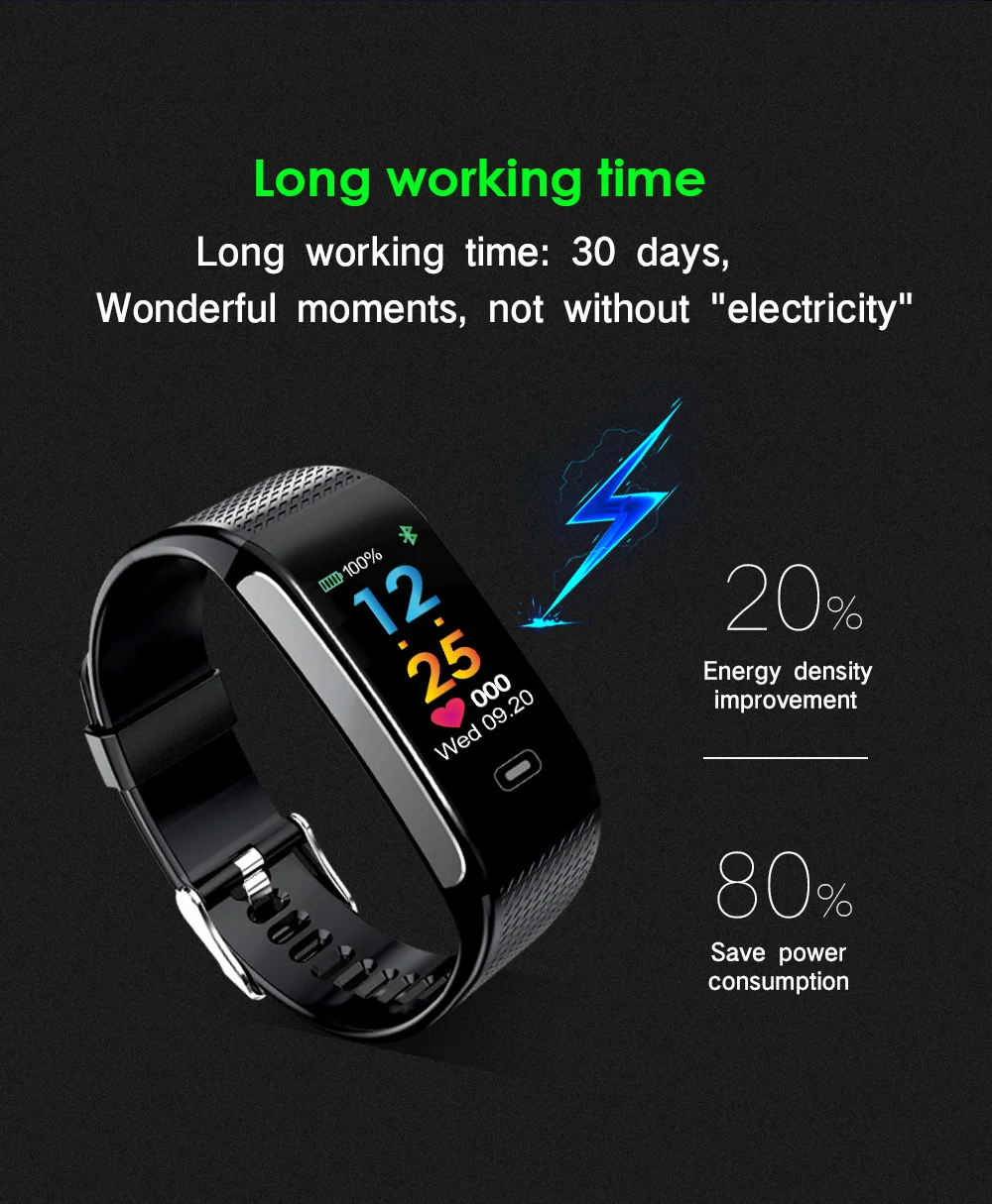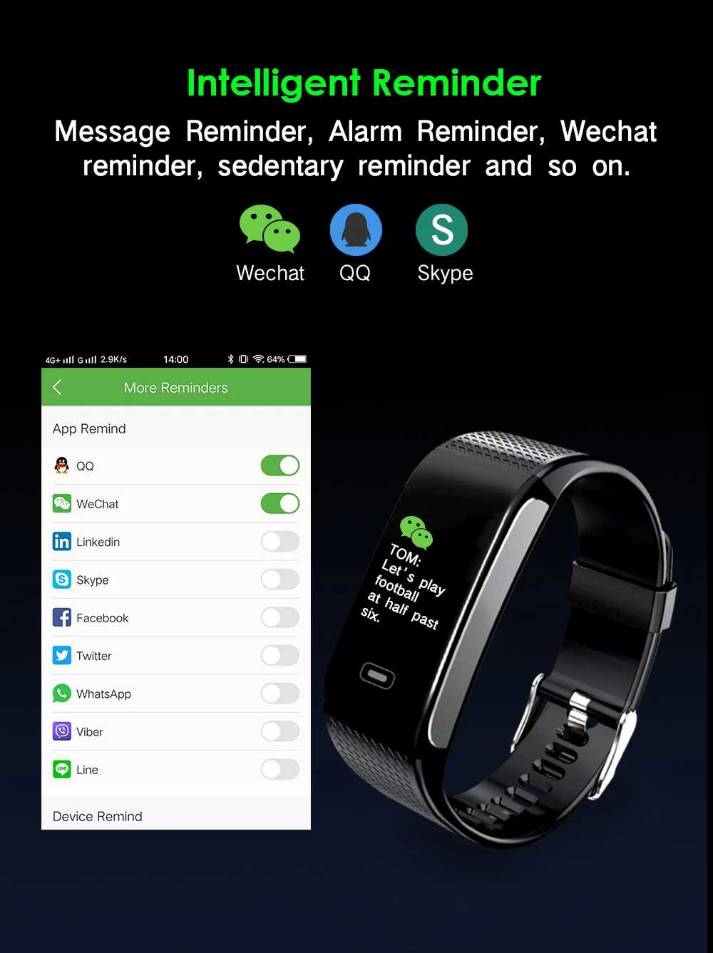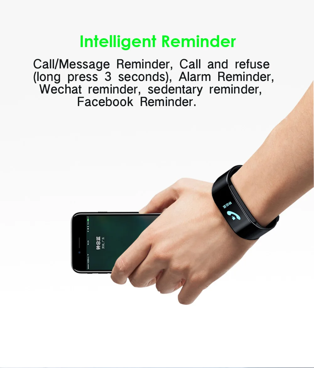 Совместимость: Android 4,4 + IOS 8,2 Экран дисплея: 0,96 OLED полный сенсорный экран Водонепроницаемость: IP67 Тип батареи: литий-ионный аккумулятор Емкость аккумулятора: 180 мАч Bluetooth : 4.0BLE (низкая мощность) Чип: Ti Материал корпуса: поликарбонат Материал ремешка: TPE Размеры: 235*20*12 мм Упаковочный лист: браслет, usb-кабель для зарядки Мониторинг скорости слуха Спортивный трекинг Звонок, напоминание о сообщении Друзья по уходу Шаги, калории и расстояние Поднимите руку, чтобы открыть экран Автоматический мониторинг сна