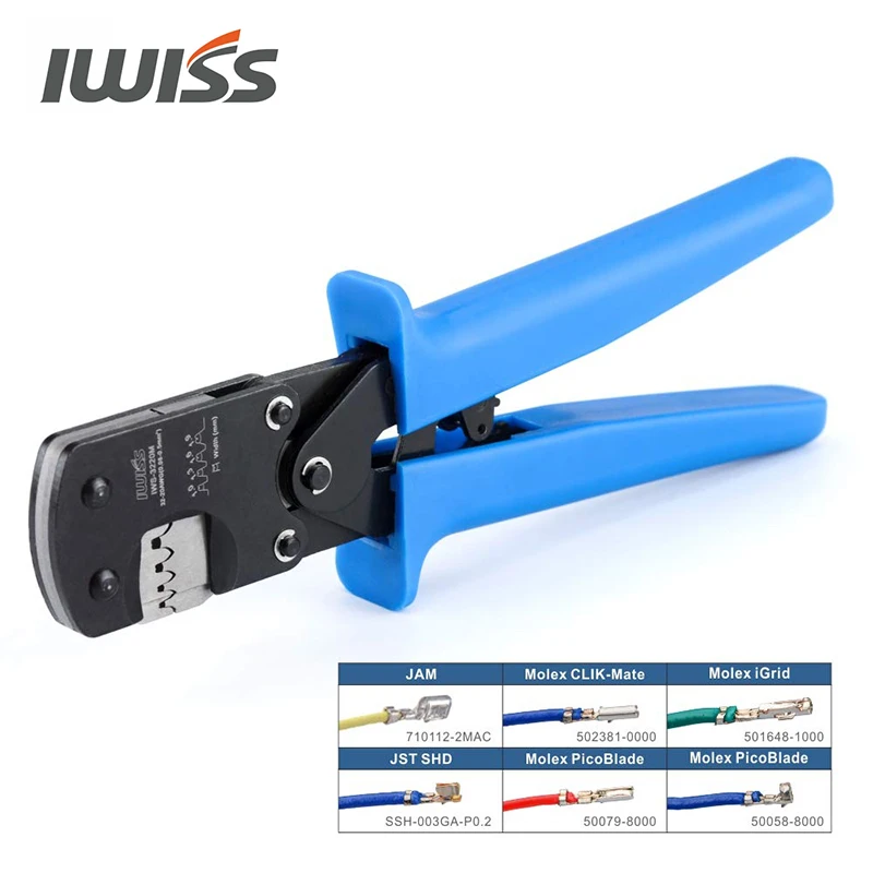 IWISS IWS-3220M микро соединитель контактный обжимной инструмент 0,03-0,52mm S2 32-20AWG трещотки щипцы для D-Sub, открытый баррель костюмы Molex, JST, JAE