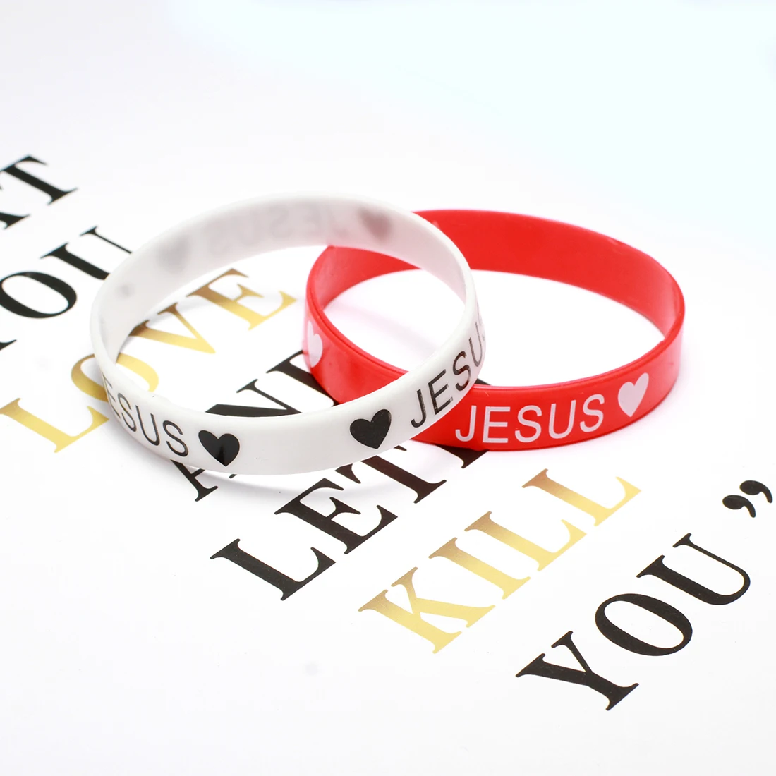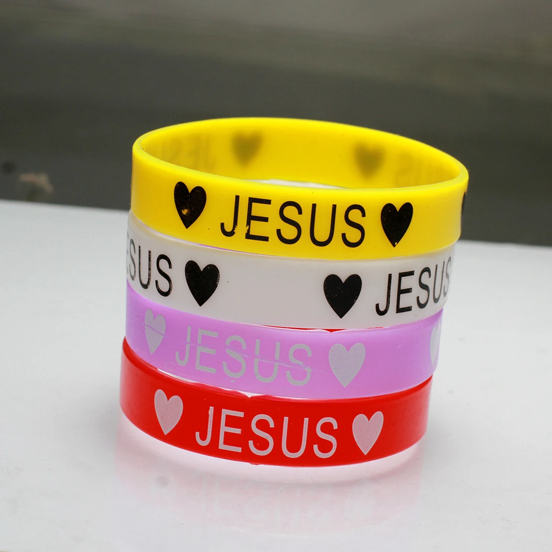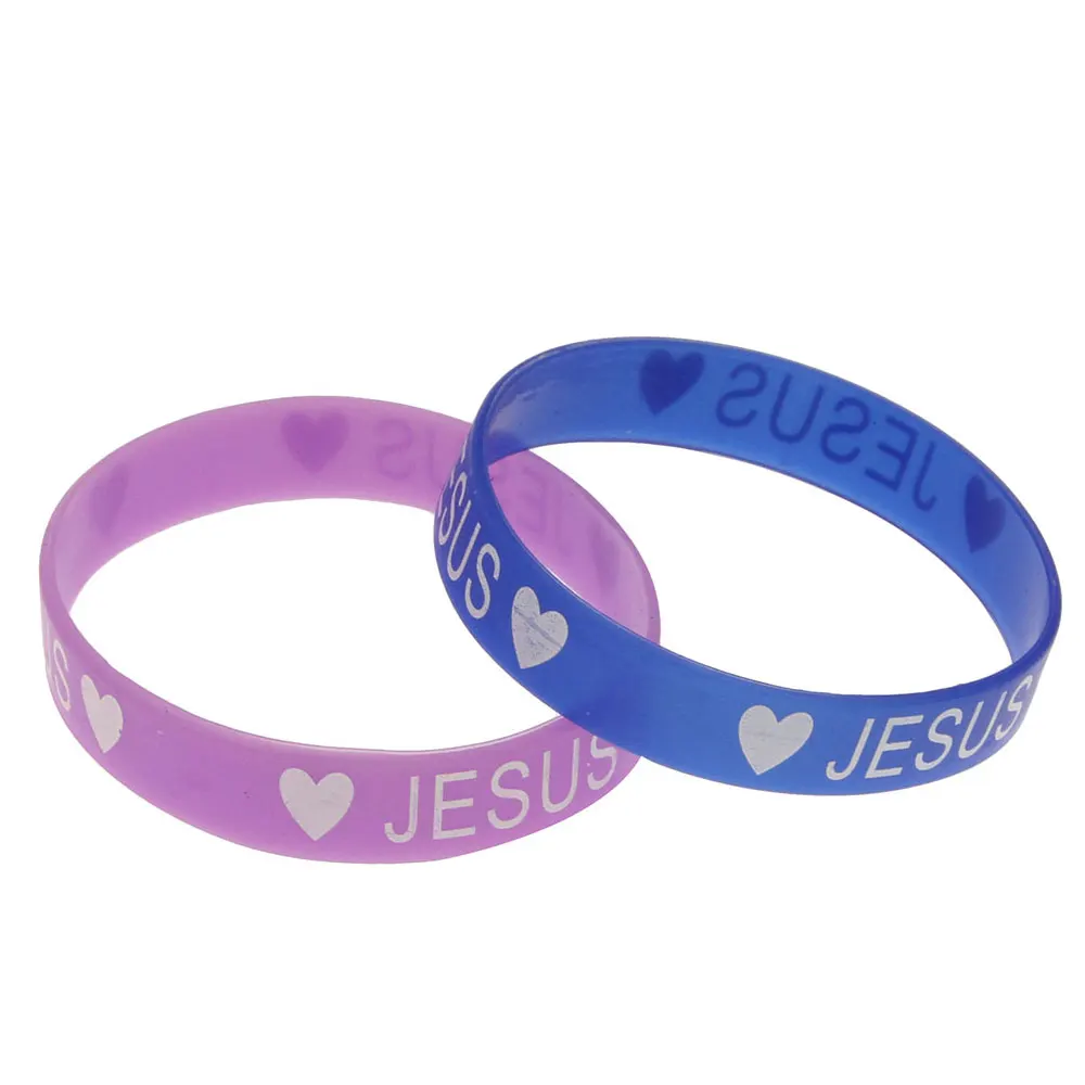 Силиконовые браслеты, известные, с принтом слова Jesus, с сердечком и различными размерами на выбор, смешанные цвета, 10 нитей в пакете, продается в пакете