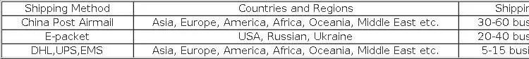 Все заказы обычно могут быть отправлены в течение 2-5 рабочих дней после того, как мы получим ваш платеж, а затем предложим номер отслеживания.