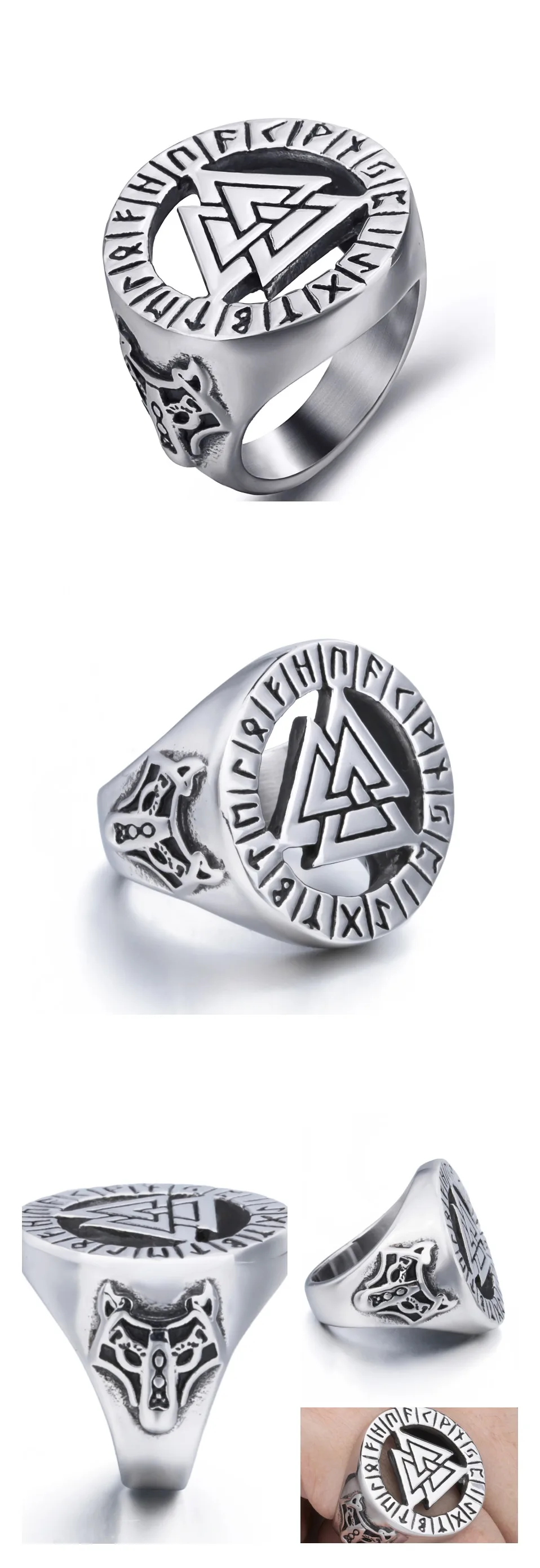 Valknut скандинавский символ Одина норвежский викинг волк серебряные украшения для мужчин мальчиков байкерское кольцо из нержавеющей стали модные ювелирные изделия