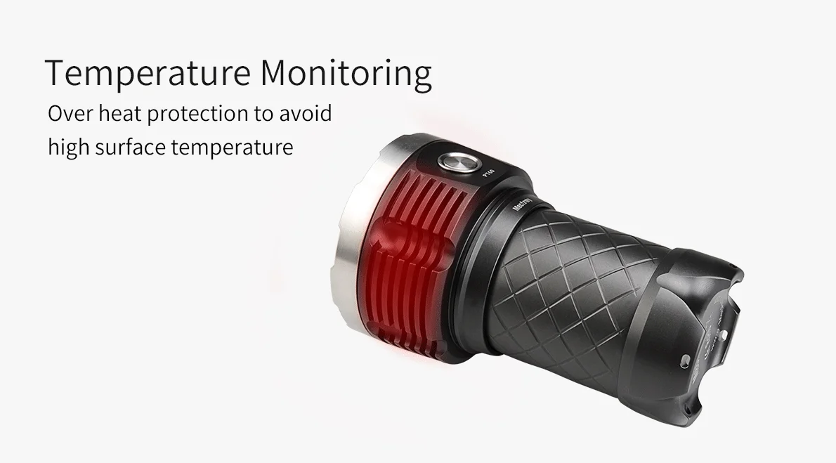 Серия PT-это высокопроизводительный светильник, который генерирует значительное тепло в режиме Turbo. Чтобы защитить светильник и пользователя, выход в турбо снизится до 70% максимальной яркости через 3 минуты. Выход также будет регулироваться контролем температуры в реальном времени