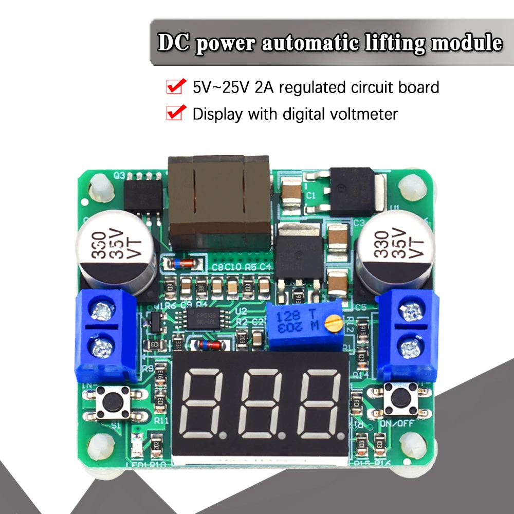 Примечание:Этот модуль оснащен повышающим и понижающим преобразователем и имеет дисплей напряжения.Производительность более LM2596 и LM2577.