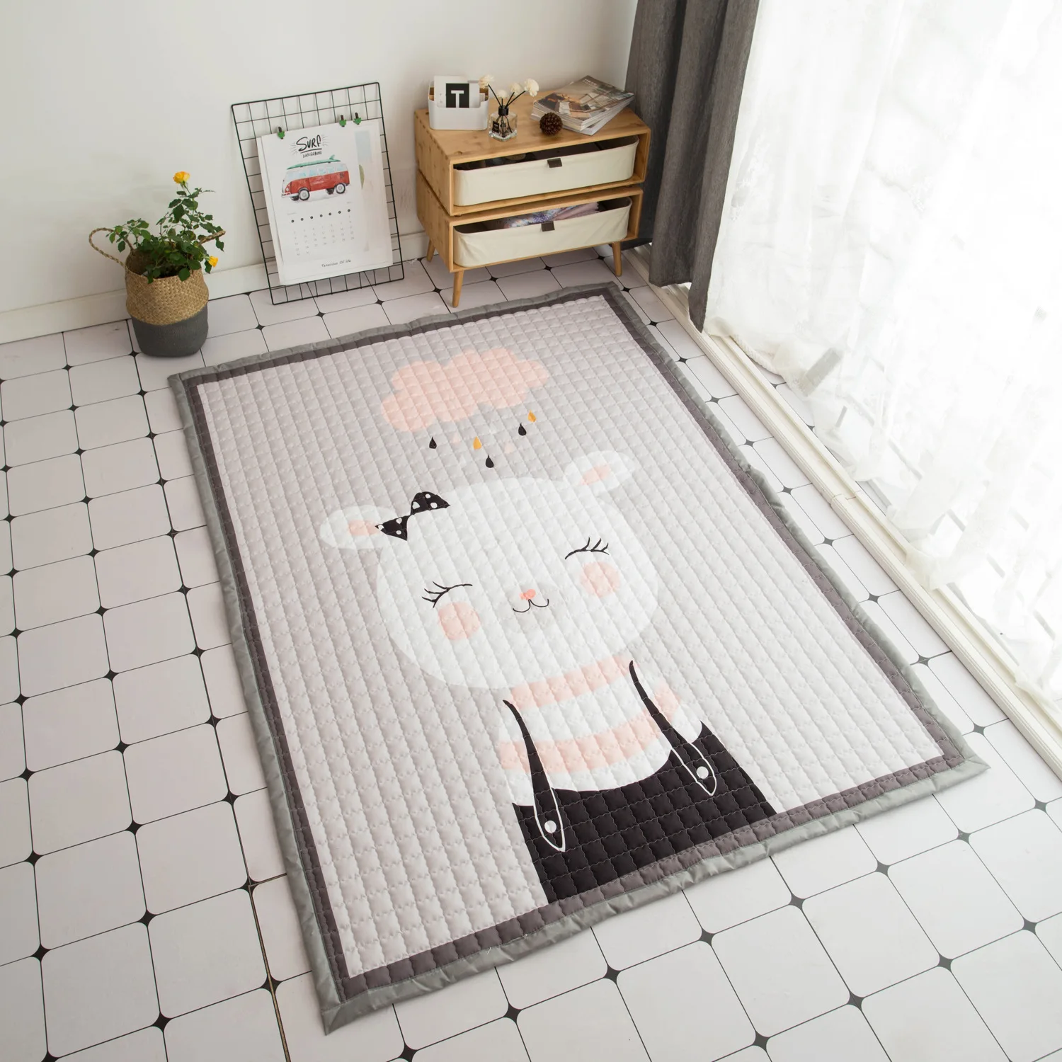 Европейский ковер 150*200 см, напольный коврик с лебедем, Противоскользящий коврик для гостиной, коврик с кроликом, домашний коврик в стиле пэчворк, детский фиолетовый игровой коврик для девочек