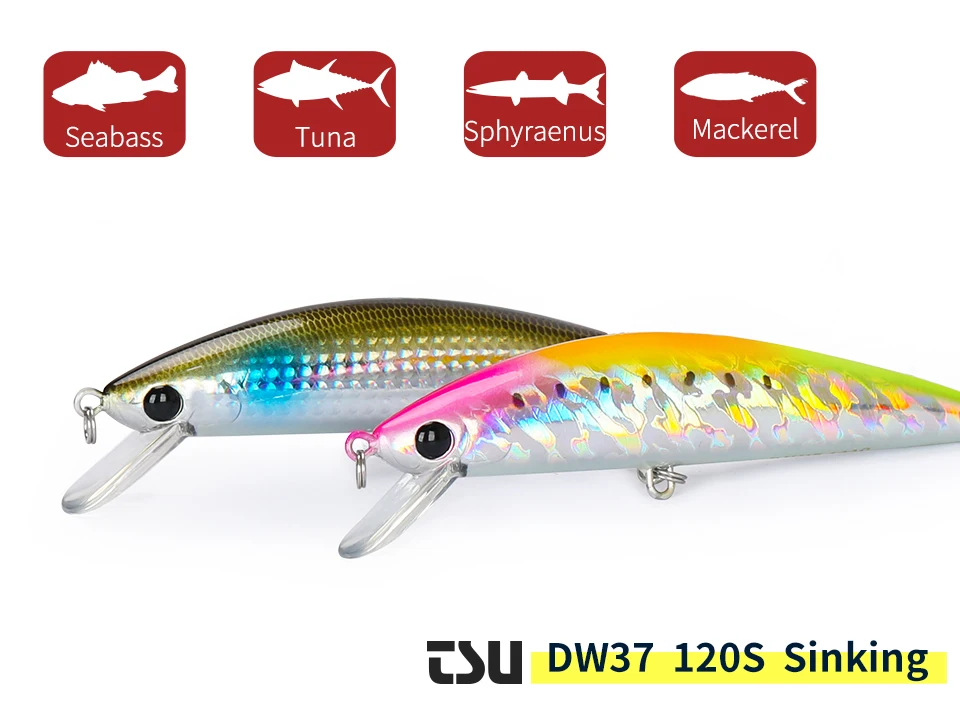 TSURINOYA DW37 120 мм 40 г погружающаяся блесна приманка тройные Крючки рыболовные приманки Iscas искусственные Para Pesca Leurre Peche Souple Wobbler