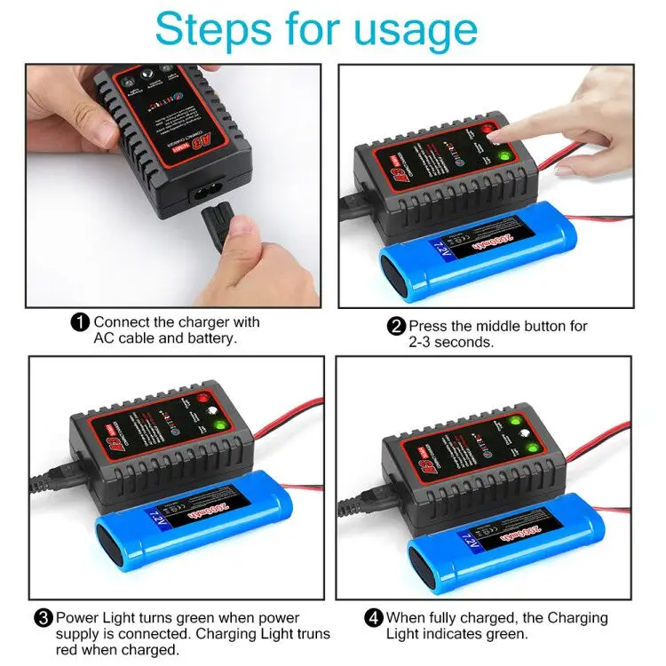 Особенности Зарядное устройство работает от сети переменного тока 110-240 В. Заряжает никель-металл-гидридные батареи до 2 А тока зарядки. Высокое качество, безопасный и прочный. Со светодиодными лампами. Модель зарядки: предзарядка, постоянный ток, мониторинг, автоматическая защита Возможность зарядки: 2s-8s NiMH аккумулятор Максимальная мощность: 20 Вт Штекер: штепсельная вилка TAMIYA Посылка: 1 зарядное устройство A3 1 х шнур переменного тока (США, ЕС, Великобритания, Австралия опционально)