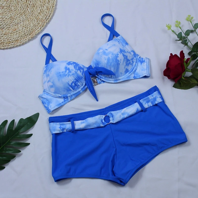 2020 Новый женский пуш ап бикини с лямкой на шее летняя спортивная футболка