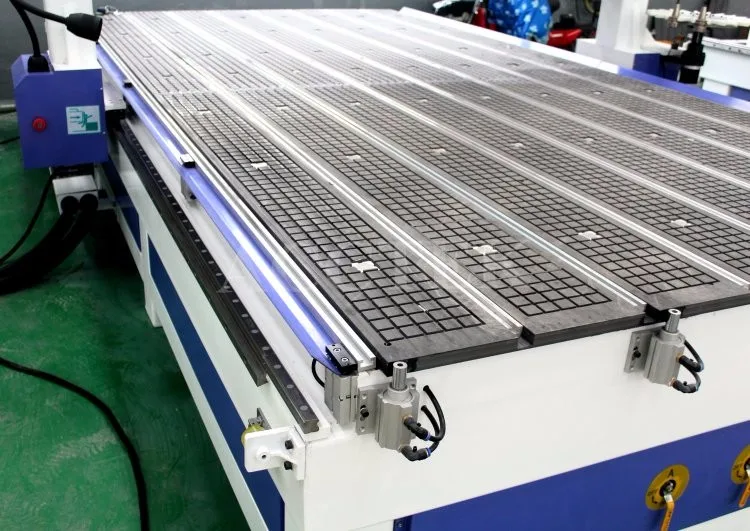 Барный вакуумный стол может адсорбировать материалы различных областей с большой мощностью. (Вакуумный стол с большим количеством областей, оператор может переключить оптацию от всего к части. С помощью регулирующего клапана в передней части машины, вакуум других областей может быть легко отключен).