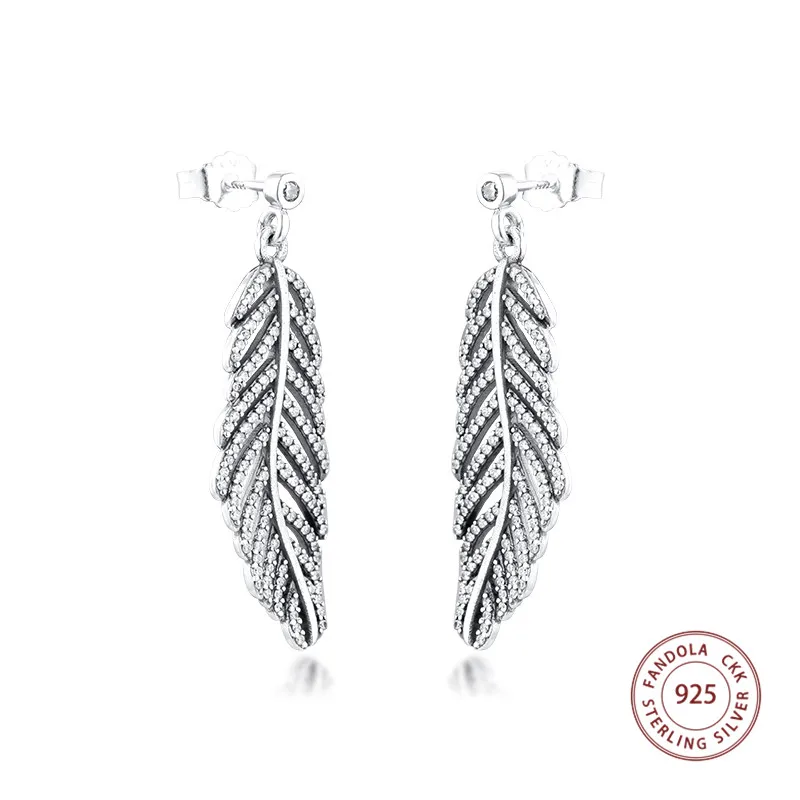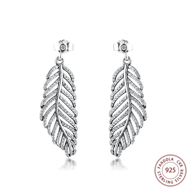 100% 925 стерлингового серебра CZ светильник как перышко, серьги со шпилькой, для женщин, обручальные серьги, модное ювелирное изделие Brincos