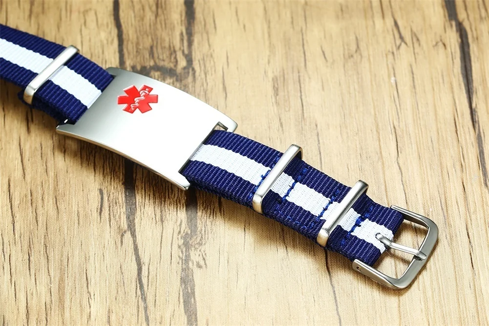 Впервые использованные солдатами в качестве наручных браслетов и популяризированные Джеймсом Бондом в фильмах, ремешки стали все яростью. Ремешки НАТО носили как с недорогими циферблатами, так и с часами на 50 тысяч долларов. Теперь вы можете с радостью использовать этот стиль с медицинской идентификационной табличкой и быть одновременно стильным и безопасным!