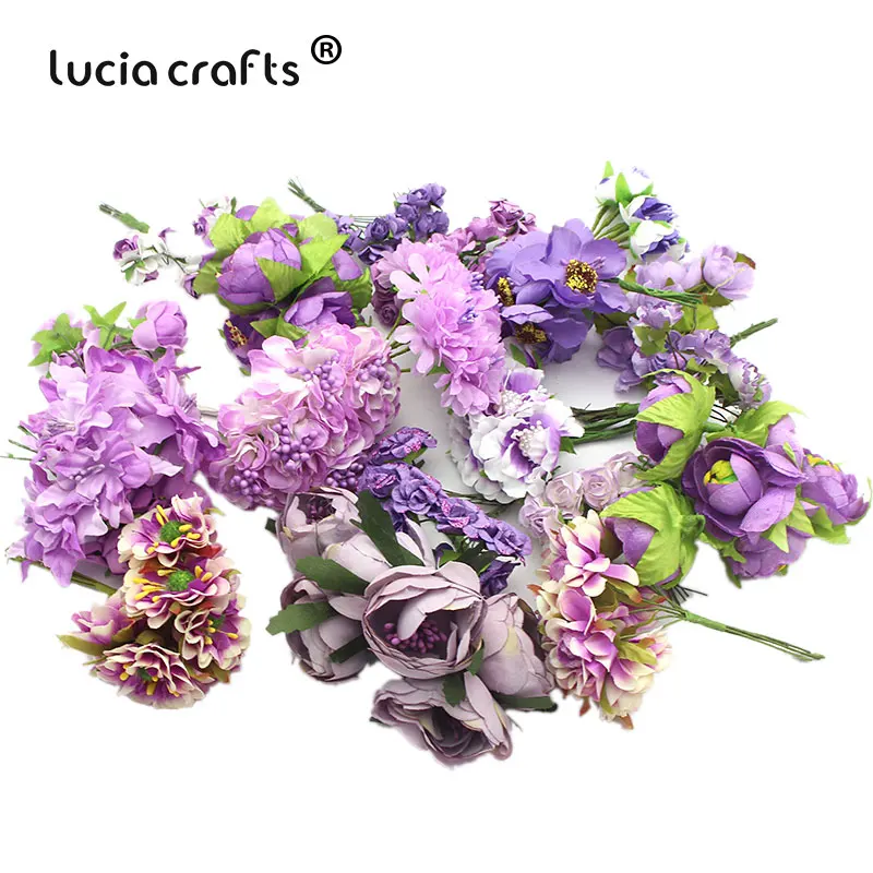 Lucia crafts 10 пучки волосСлучайный смешанный размер искусственный цветок голова Свадебная вечеринка DIY материалы для украшенияA0309