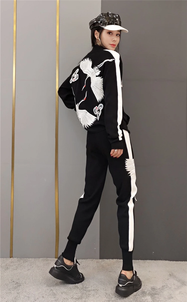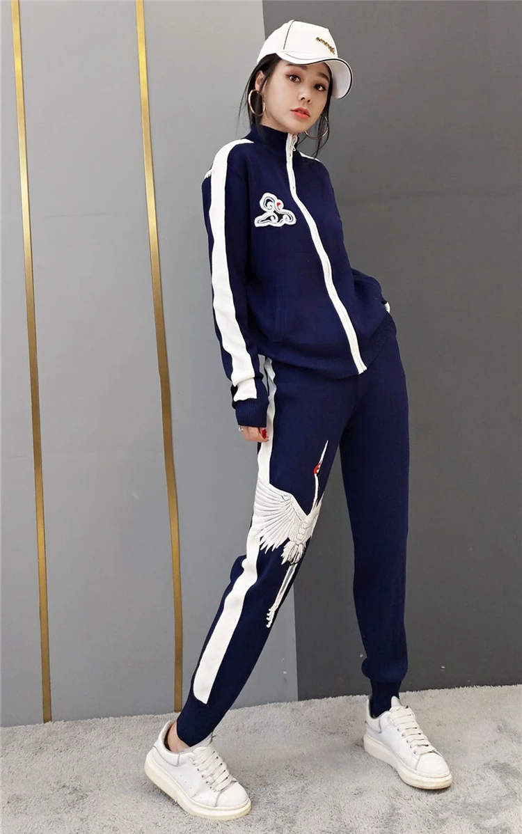 Новинка весны, модный вязаный свитер и брюки, Женский Повседневный комплект с узором для молодых девушек и пуловеры с бахромой