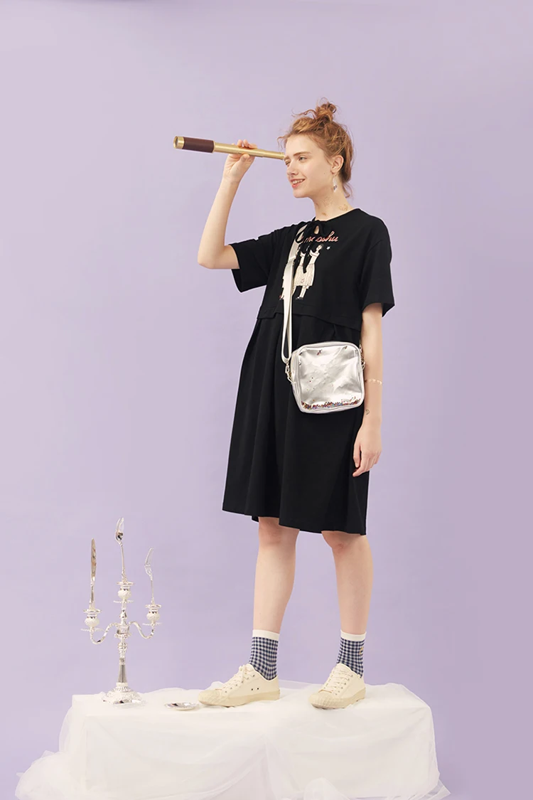 Женские Хай стрит рюшами Сращивание футболка платье размера плюс свободное с