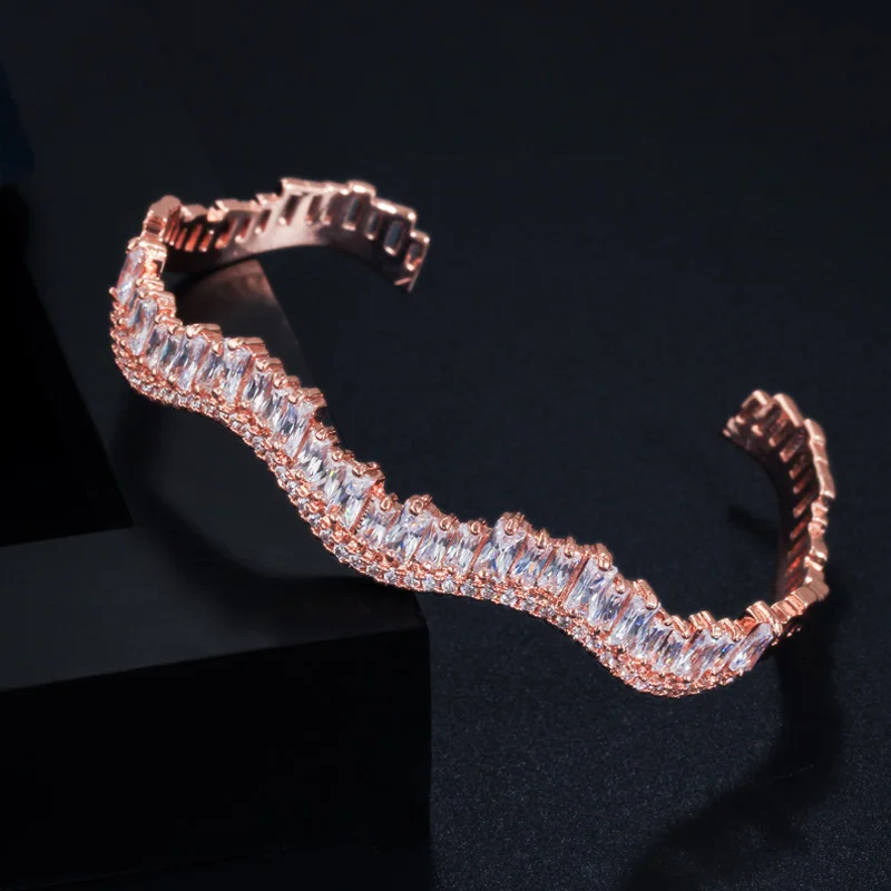 ThreeGraces Блестящий многослойный браслет багет с кубическим цирконием AAA, Большой браслет с манжетами, дамские ювелирные изделия CZ BA015