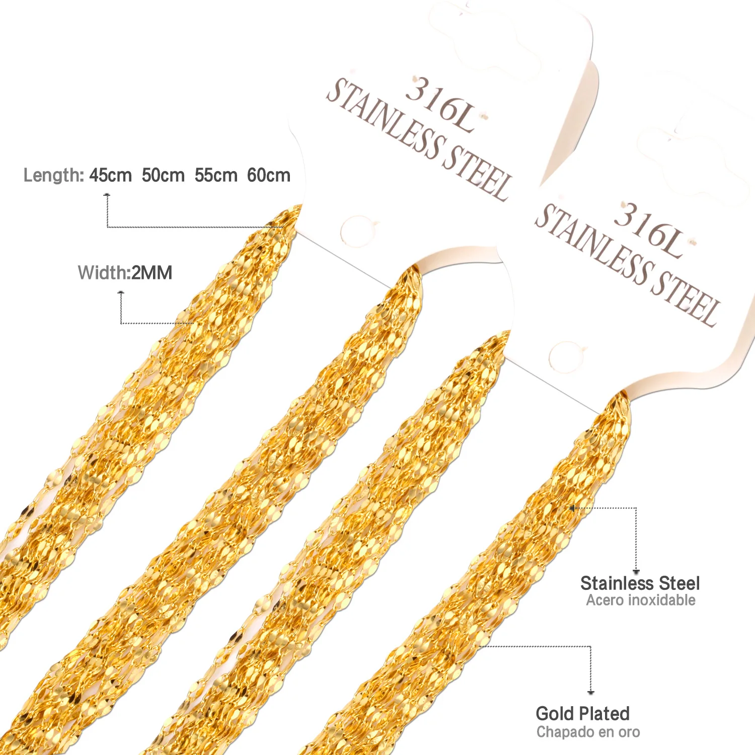 ASONSTEEL, настраиваемая длина 2 мм, ширина, нержавеющая сталь, Золотая цепочка, ожерелье для мужчин и женщин, водонепроницаемые ювелирные изделия, оптовая продажа