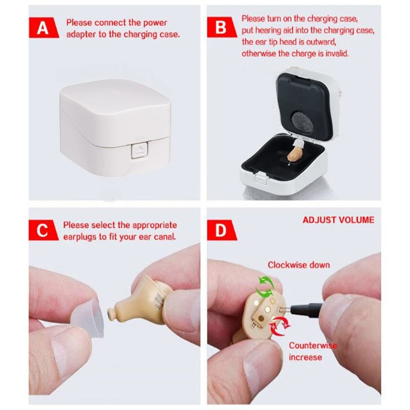 2 канала цифровой чип интеллектуальное шумоподавлениеПолностью автоматический широкий динамический диапазон сжатия (WDRC)Линейное усиление к WDRC регулируемымСверхтонкий 10-ти полосный звук УправлениеПодавление акустических отзывыОткрытая платформа DSP и оптимальный целевой коэффициент усиления DispНаучный алгоритм установкиТехнология обработки Hi-Fi сигналаДва независимых воспоминания (внешний VC oprional)Максимальная выходная мощность (MPO) управленияПереключатель памяти и индикатор низкого заряда батареиНизкое потребление батареиАдаптивное подавление шумаСупер мощность доступна для средней и средней потери слухаFrist Время зарядки: 6 hUSB Перезаряжаемый невидимый слуховой аппаратТехнические параметры:MAX-SSPL90:117dBSPLHFA-SSPL90:106dBSPLПиковый коэффициент усиления: 40 дБHFA-FOG:35 дБЧастотный диапазон: 200 Гц ~ 6000 ГцГармонические искажения: 500 Гц: 1.6%800 Гц: 1.0%1600 Гц: 0.3%Эквивалентный уровень шума: 32 дБРабочий ток: 0,25 мАВремя сжатия: 6 мсВремя восстановления сжатия: 16 мсПримечание:-Отрегулируйте громкость до минимального, прежде чем носить.-Выберите наушник немного большего размера, чтобы избежать Уистлера.-Увеличение громкости постепенно, чтобы избежать внезапного увеличения звука.-Если вы слышите завывание, проверьте, подходит ли ушной (силикагель) Размер вилки, подходящий выбор затычек для ушей и подключен, убедитесь, что нет утечки воздуха.-Пожалуйста, Регулярно очищайте ушные вилки или ушные формы, чтобы обеспечить нормальное использование слуховых аппаратов.-Используйте в течение длительного периода времени, пожалуйста, удалите батареи, чтобы предотвратить размывание батареи слухового аппарата.