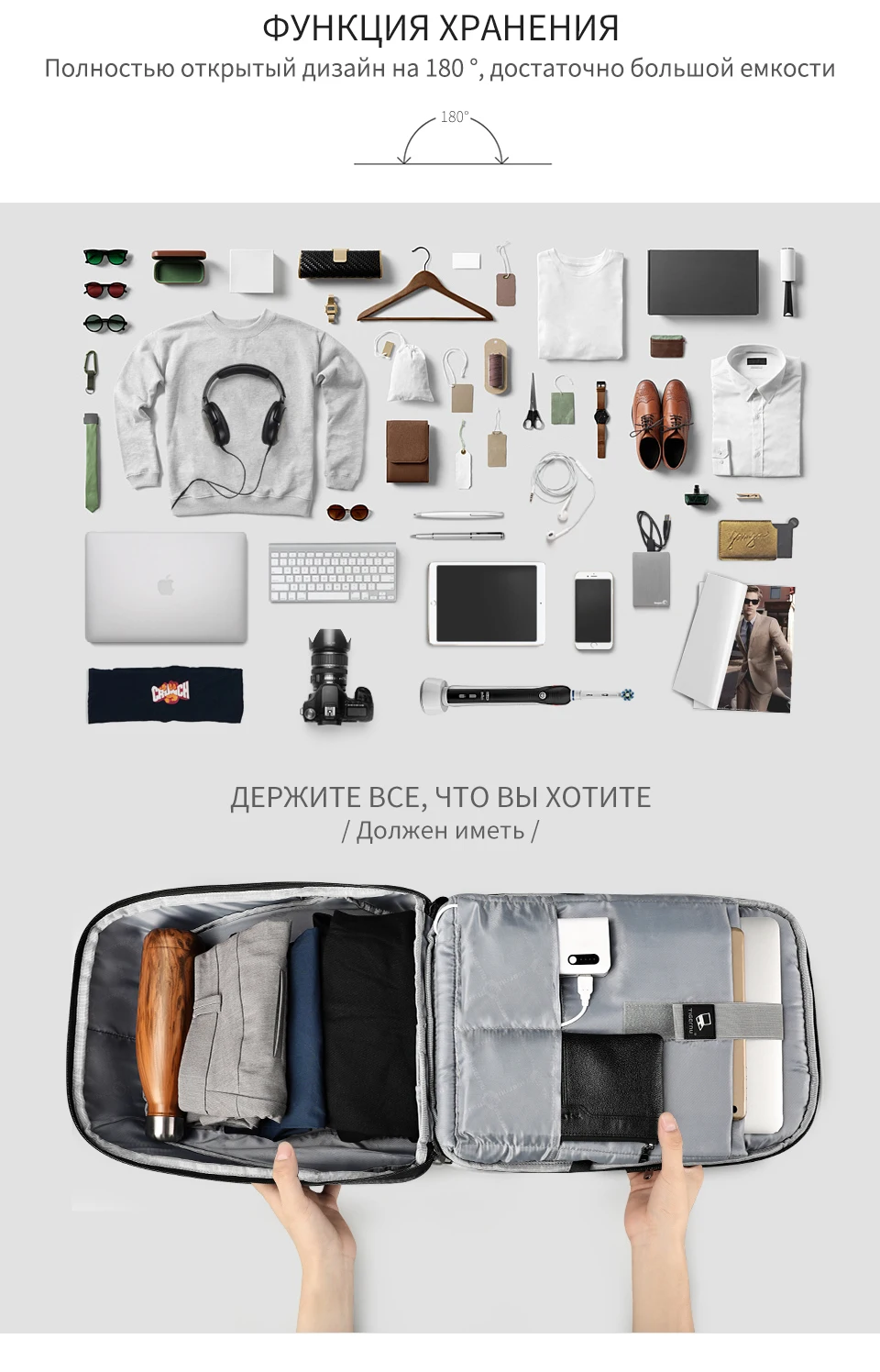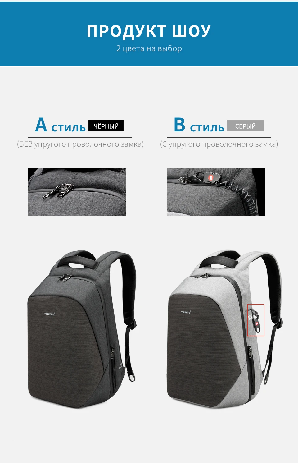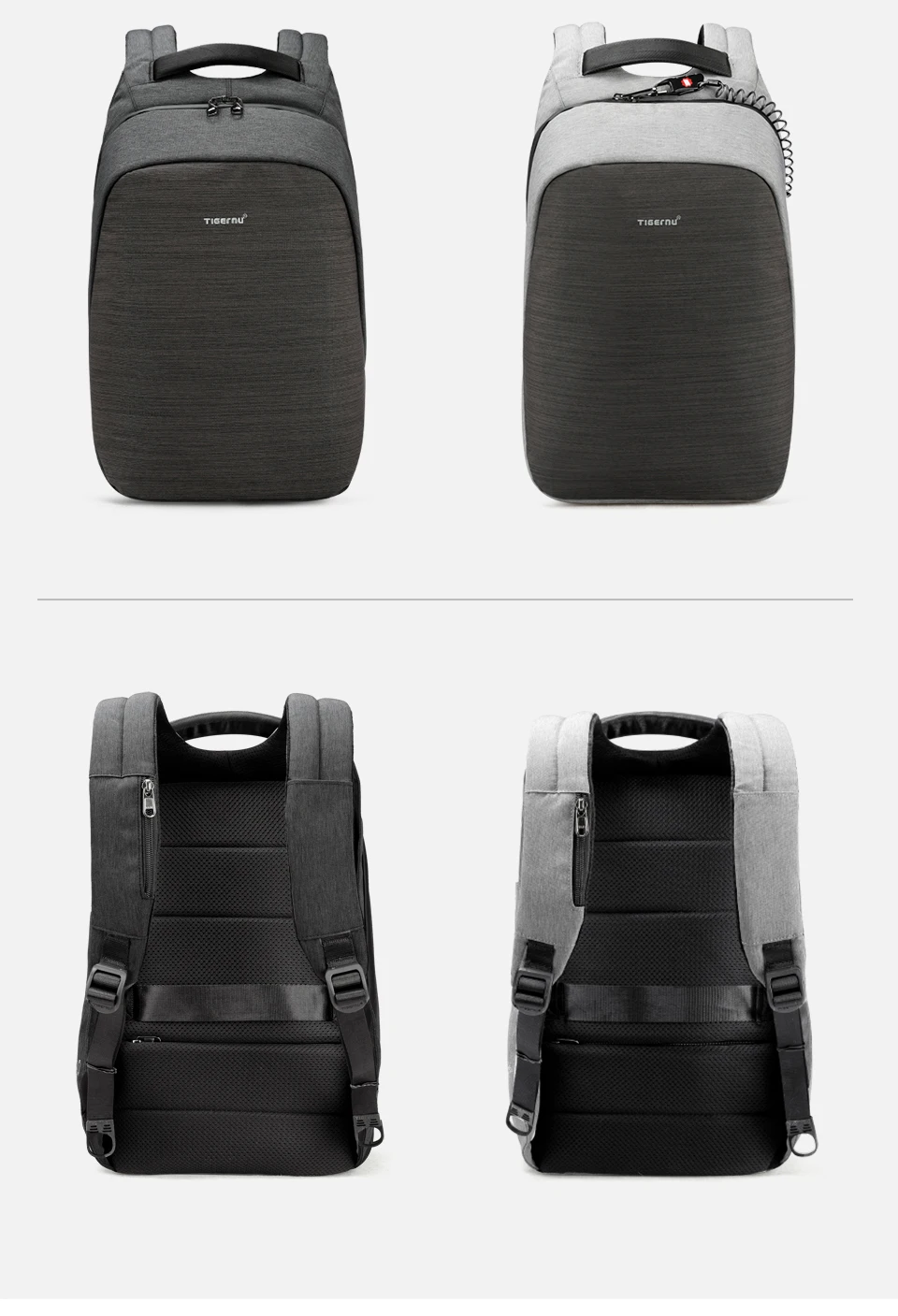 1. Против кражи сильный замок 2. Водонепроницаемая молния 3.Заменяемый USB-порт зарядки 4.45 градусов -90 градусов -180 градусов открытый метод 5. Водостойкий материал