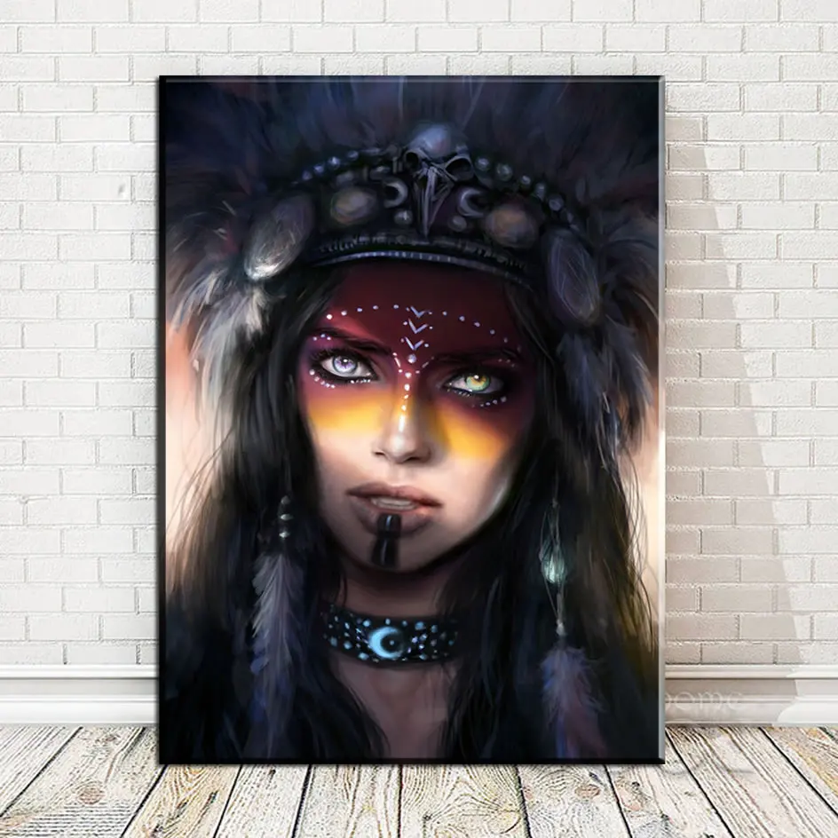 Портрет холст искусство настенные картины для гостиной индийская женщина пернатая гордыня картина домашний Декор печать Прямая поставка современный 12X24Note1 измерения: 1 дюйм = 2,54 см, 1 см = 0,39 дюймов