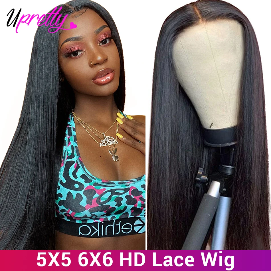 Upretty HD прозрачный кружевной парик 6x6 5x5 HD парик на шнурке 250 плотность парик на шнурке 30 дюймов Remy бразильские прямые человеческие волосы парики