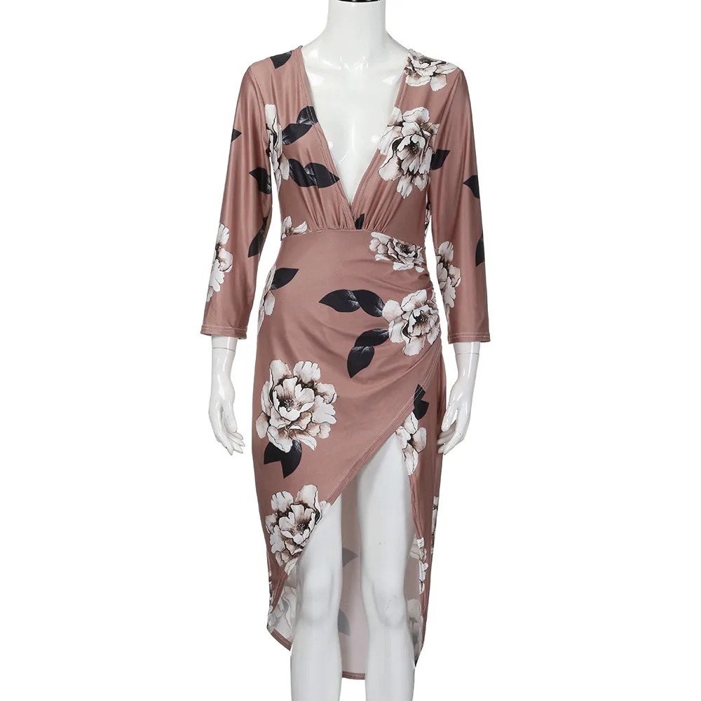 Женское осенне-зимнее повседневное облегающее платье с цветочным принтом и длинным рукавом