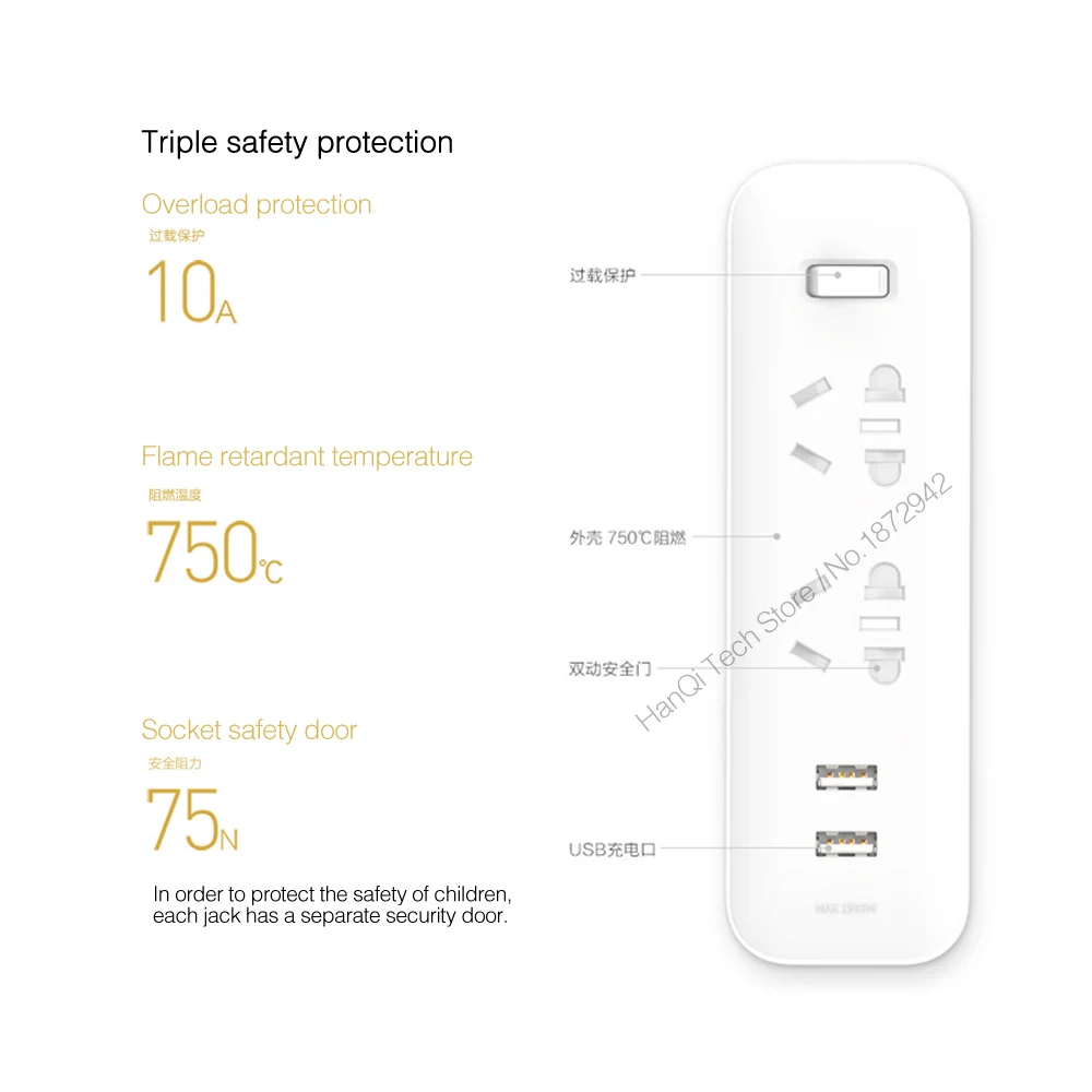 Xiaomi Mijia мощность полосы конвертер портативный Plug Путешествия адаптер для офис 5V 2.1A 2 розетки с 2 портами (стандарт быстрой зарядки H20
