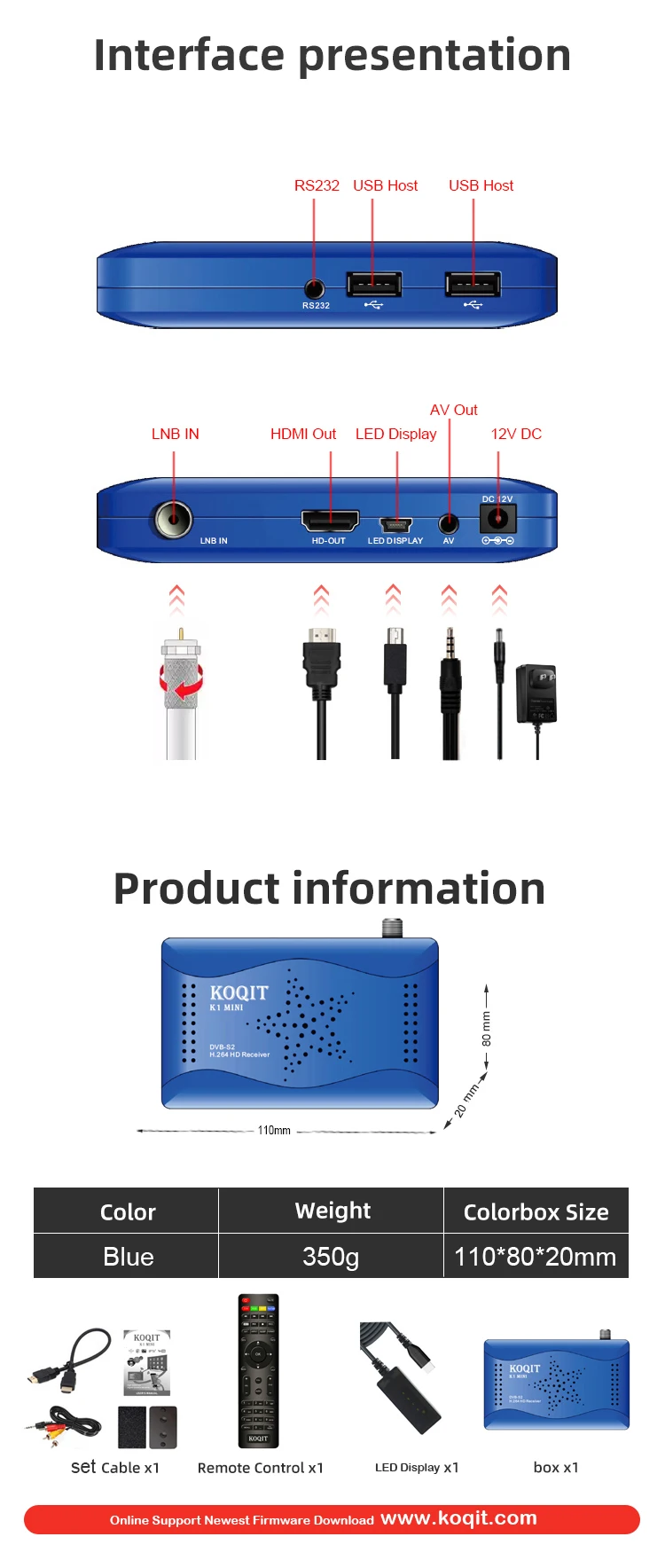 ★ Этот миниатюрный цифровой спутник DVB-S2 Koqit с приемником функций IKS и SKS. ★ Миниатюрный размер с двумя портами USB, один для USB WIfi, а другой для воспроизведения записи через USB PVR. ★ Он может работать во всем мире Free To Air Satellite HD / SD Clear Channel с Dolby AC3 Audio. ★ Поддержка Internet IKS, Cccam Newcam ... (без учетной записи) ★ И SKS Key Decorded Biss key и настройка кода Power VU ★ Требуется USB-ключ Wi-Fi MTK7601 ★ Поддержка онлайн-приложения Youtube Video. ★ Полностью соответствует стандарту DVB-S / S2, MPEG-2/4 H.264 ★ Поддерживает одиночный, множественный или слепой спутниковый преобразователь PAL / NTSC. ★ Поддерживает моторный протокол DiSEqC 1.0 / 1.1 / 1.2 / 1.3 (USALS) ★ Мощная и высокоэффективная 7-дневная функция EPG. ★ USB 2.0 для записи каналов PVR, TimeShift, обновления программного обеспечения, воспроизведения медиафайлов и воспроизведения мультимедиа Список пакетов: (USB-ключ Wi-Fi не был обязательным) 1 * миниатюрный приемник DVB-S2. 1 * пульт дистанционного управления (без аккумулятора) 1 * кабель HDMI (длина 50 см) 1 * кабель RCA 1 * адаптер питания 1 * светодиодный удлинитель ИК-кабель