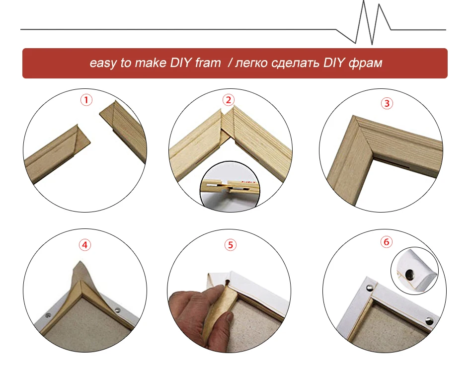 DIY рамка (акриловая краска, холст, нейлоновая кисть x3, DIY Деревянные Рамки).