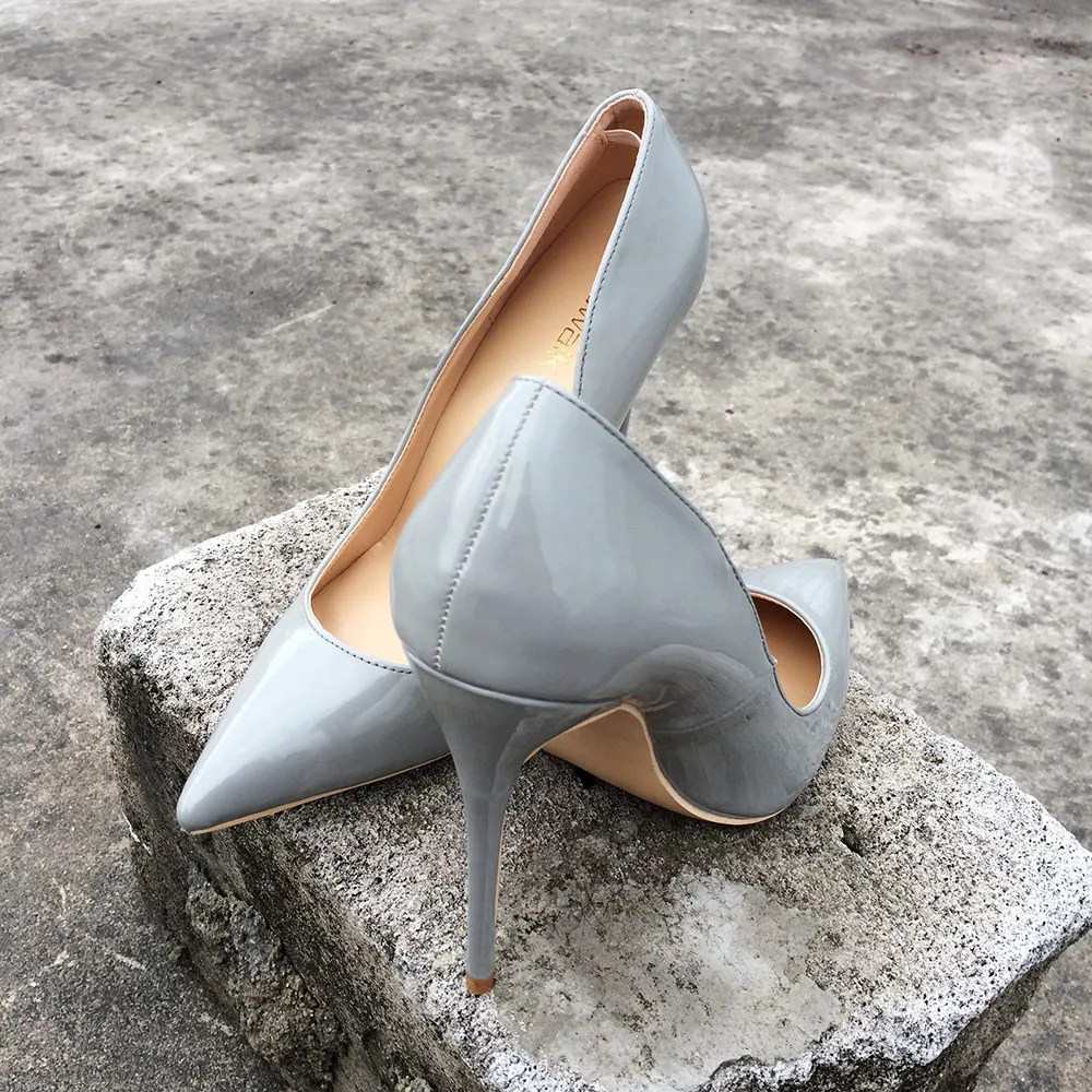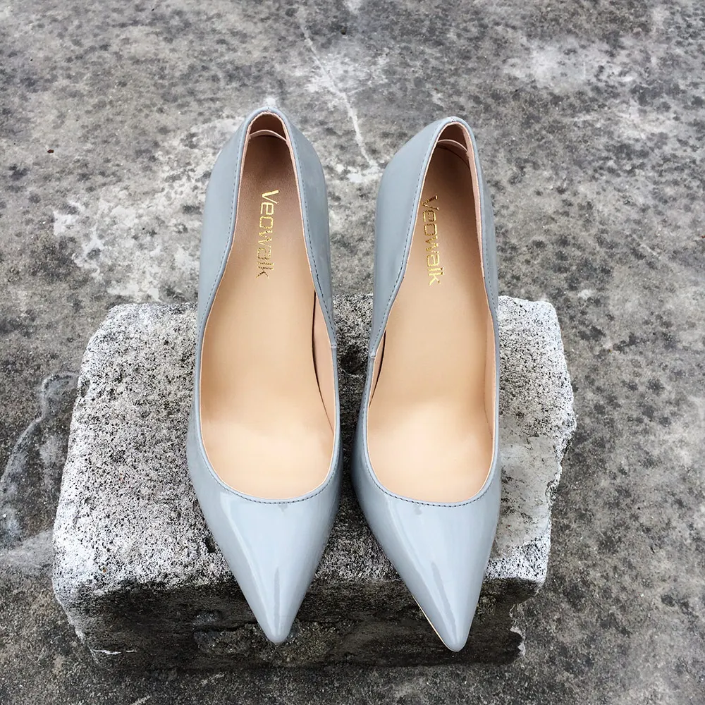 Название бренда: Veowalk Материал верха: лакированная кожа Материал подкладки: искусственная кожа Материал подошвы: Резина Высокий каблук: 12 см/10 см/8 см Цвет: серый Размер: 34 35 36 37 38 39 40 41 42 43 (Только обувь на каблуке 12 см с эластичной лентой на каблуке внутри)