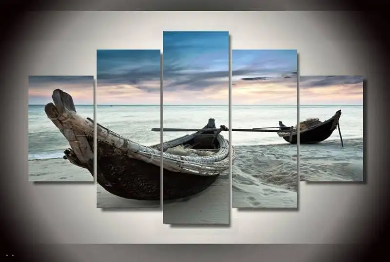 Фоторамка лодка Модульная картина морской пейзаж закат 5 шт. холст художественные принты рамка живопись морская картина маслом настенные художественные картиныNote1 измерения: 1 дюйм = 2,54 см, 1 см = 0,39 дюймов