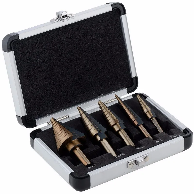 5 шт./компл. титановый HSS Core шаг сверла набор с 1/4 "и 3/8" Shanks SAE с алюминиевым защитным чехлом