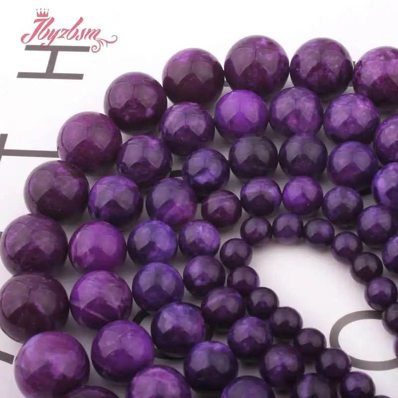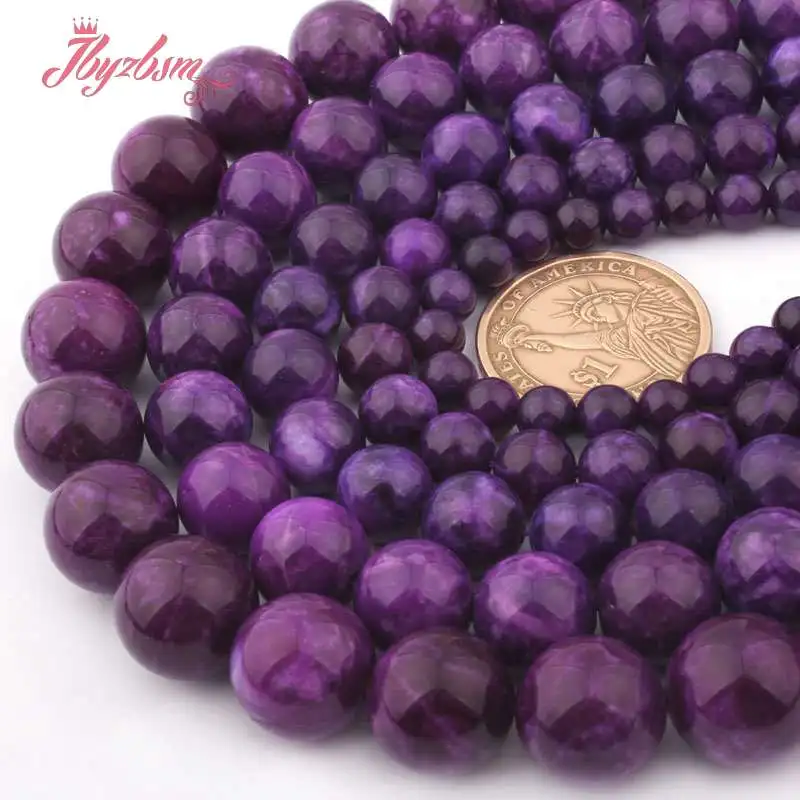 6,8,10,12,14 мм Гладкие Круглые Бусины Charoite Jades для женщин ожерелье браслет серьги Сделай Сам ювелирные изделия свободные нити 15"